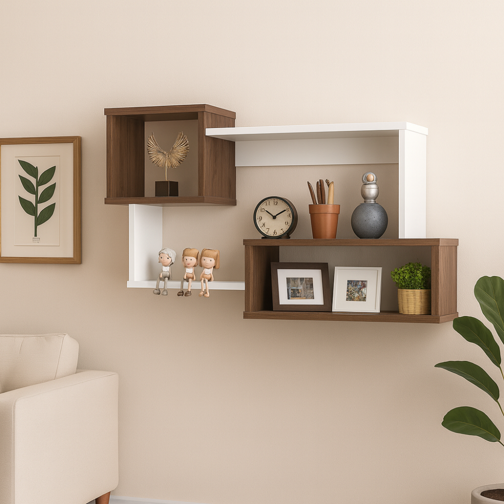 حول جدارك الفارغ إلى نقطة جذب في الغرفة مع رف حائط أبيض وبني بتصميم عصري متناسق. ألوانه الهادئة تندمج مع أي ديكور حديث وتضيف لمسة راقية، بينما يمنحك مساحة عملية لعرض كتبك ونباتاتك وتحفك المفضلة بطريقة أنيقة تجعل الغرفة أكثر حيوية وجمالا.