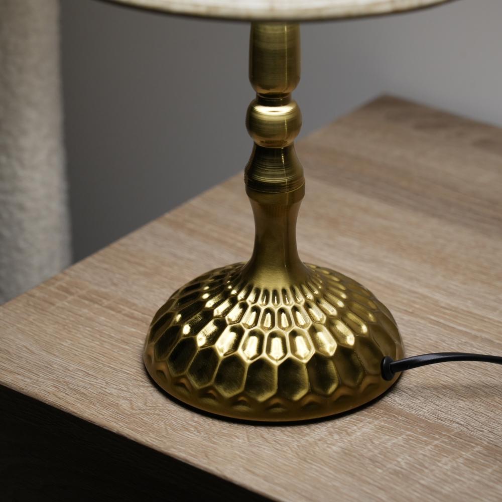 اباجورة طاولة بقاعدة معدنية مزخرفة – لون ذهبي نحاسي أنيق