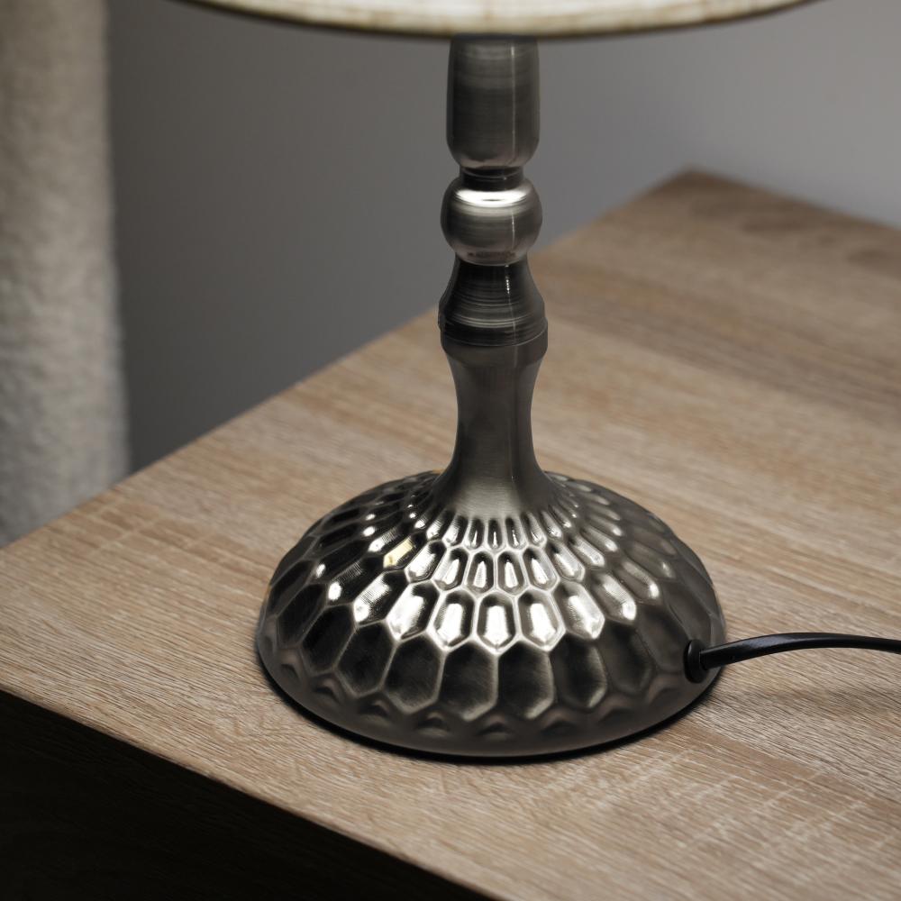 اباجورة طاولة بقاعدة معدنية مزخرفة – لون فضي