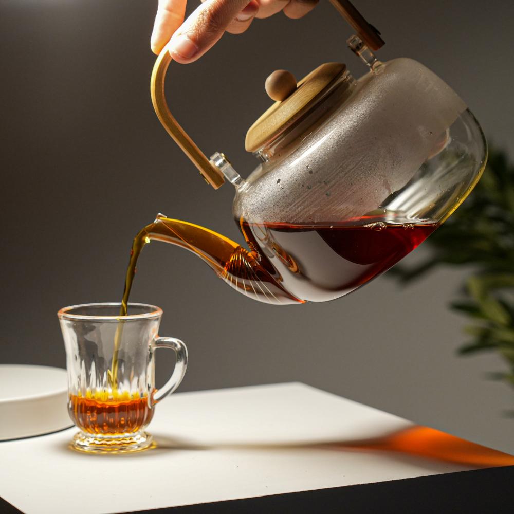 إبريق شاي زجاجي أنيق بمقبض خشبي