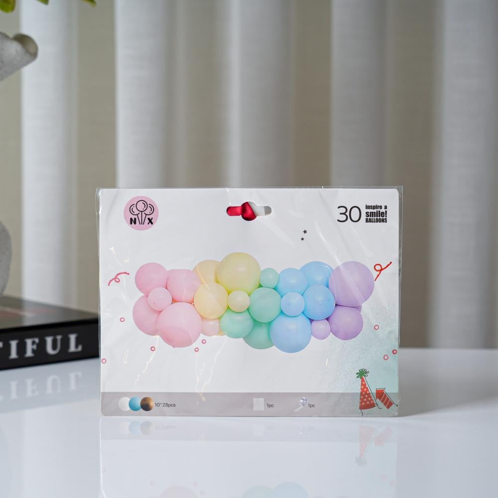 - باقة متكاملة تحتوي على 30 بالون بأحجام وألوان متنوعة.