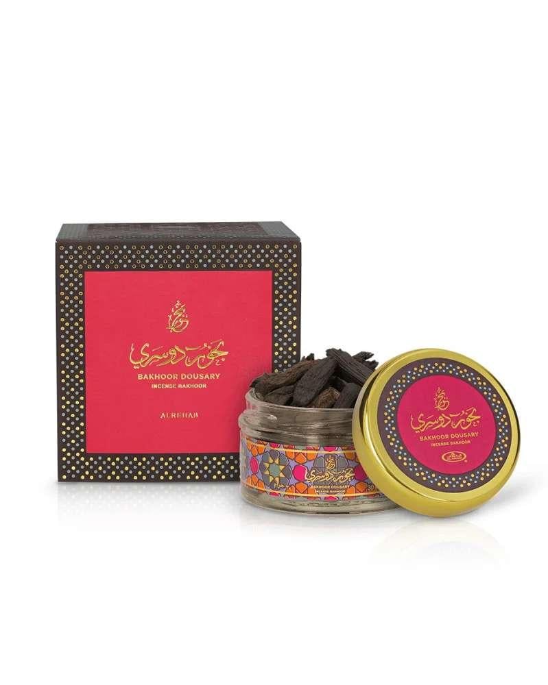 بخور دوسري مستوحى من رائحة البخور الدوسري الفاخر من مجموعة الرحاب تركيبة أرقى العطور مميزة من العطور النقية الخاصة بتصنيع البخور ، مقدمة من عطر الصندل الأصلي، تتوسطها نفحات من المسك بقاعدة من نفحات العود.