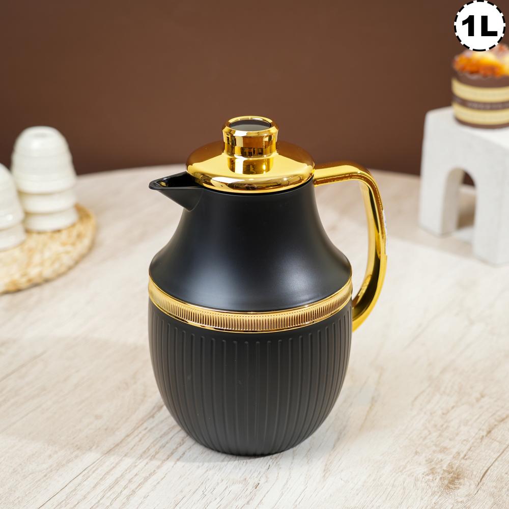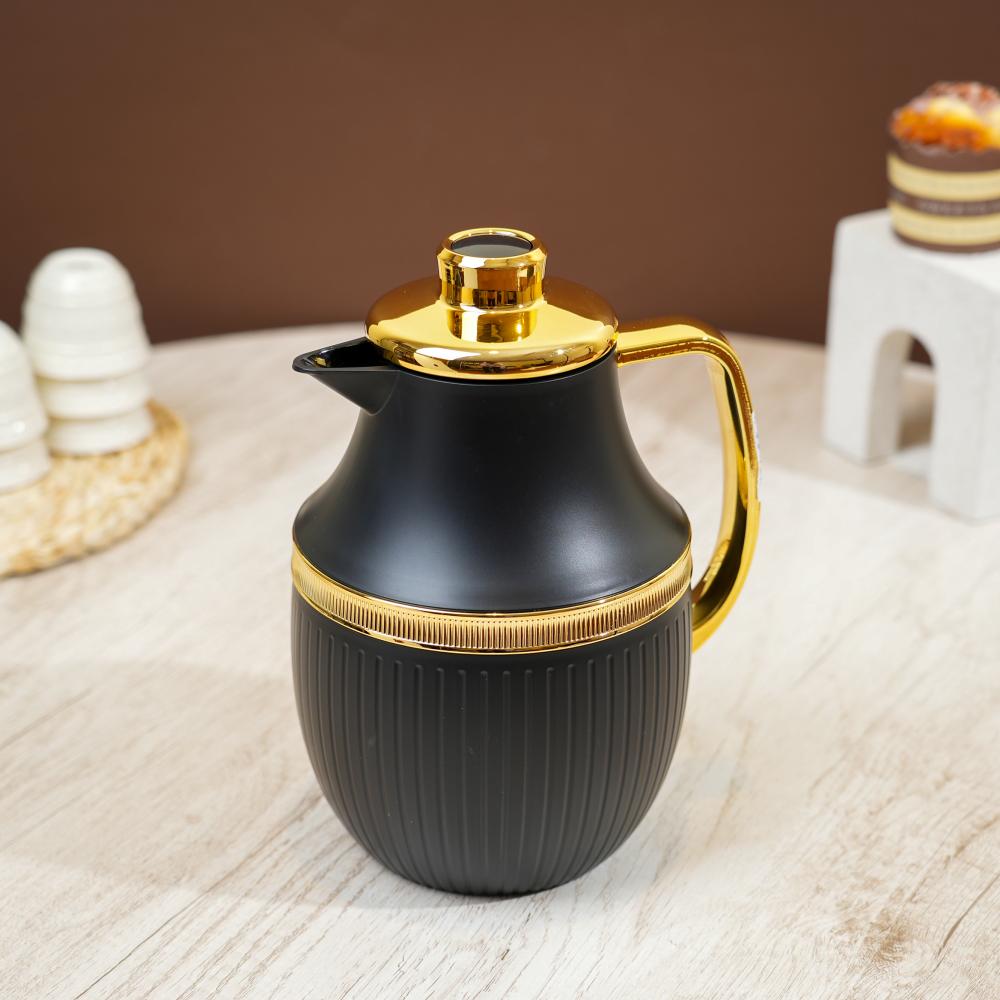 ترمس بتصميم مضلع باللون الاسود والذهبي - 1 لتر