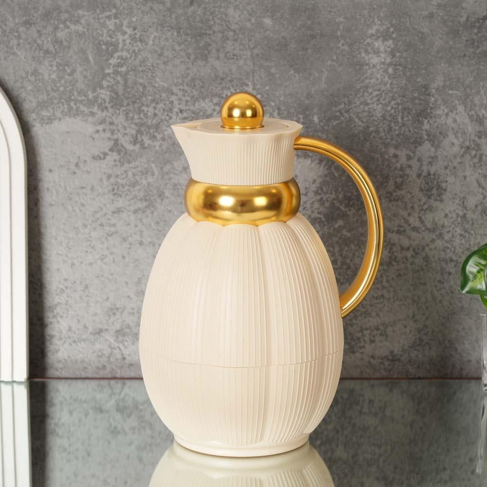 ترمس لحفظ المشروبات الساخنة و الباردة بتصميم عصري باللون البيج والذهبي - 1 لتر