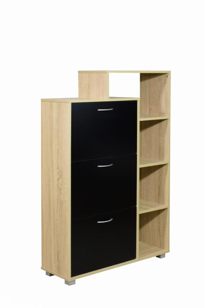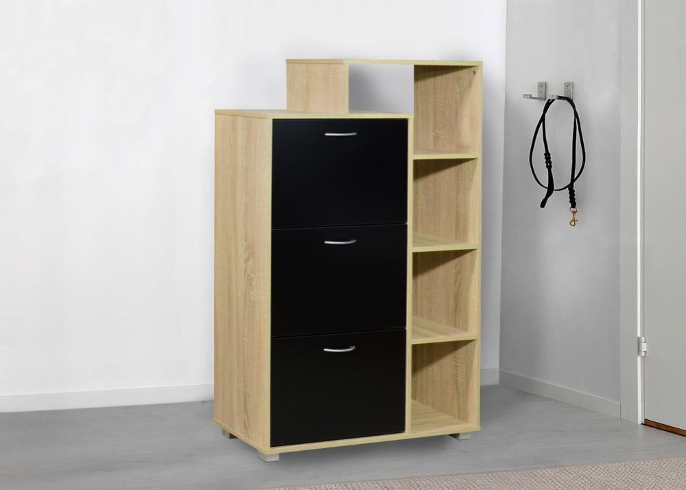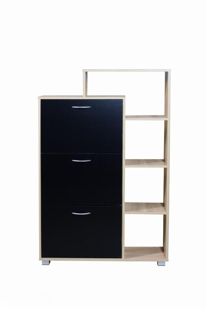 جزامة أحذية بثلاثة أبواب مع رفوف جانبية مفتوحة، تمنحك حل عمليا للتخزين وتنظيما أنيقا لمدخلك. مصنوعة من خامات عالية الجودة بتصميم مودرن يجمع بين اللونين الأبيض والأسود ليضيف لمسة عصرية تناسب مختلف أنماط الديكور