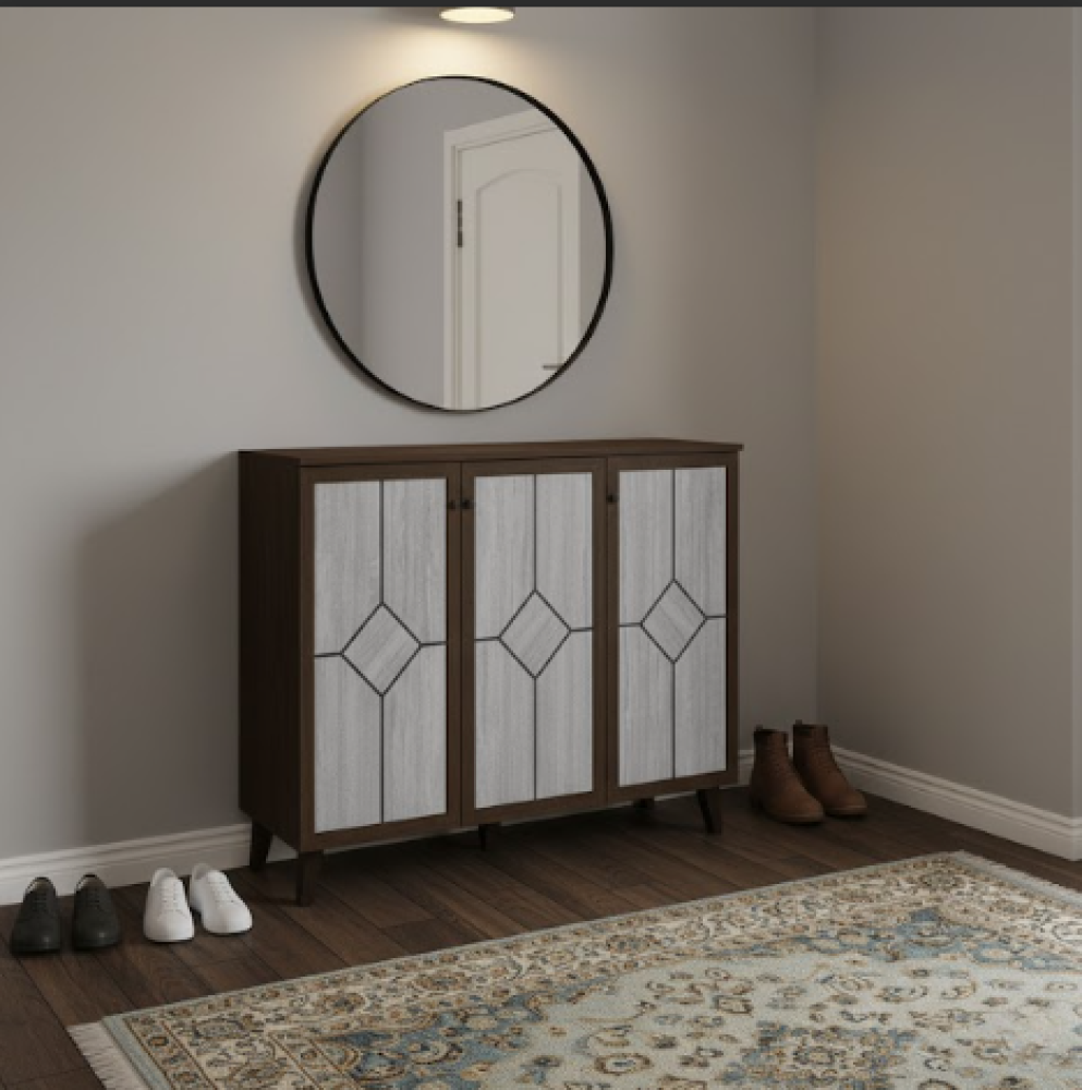 خزانة أحذية بتصميم عصري تساعدك على تنظيم الأحذية في مدخل المنزل بطريقة أنيقة ومرتبة، مع لمسة تضيف جمالاً لديكور البيت.