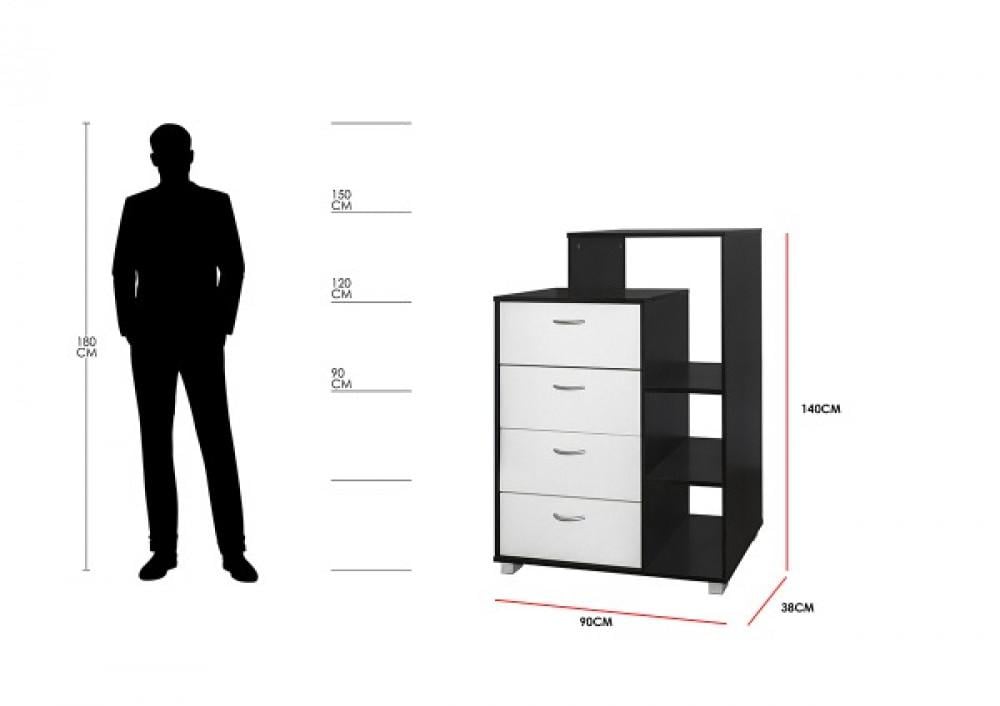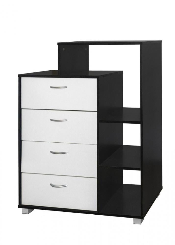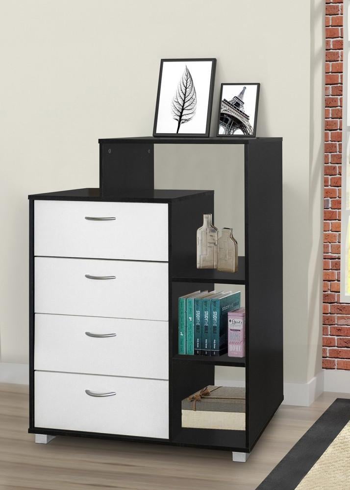 خزانة أدراج  خشب مع رفوف جانبية للتخزين – ابيض وأسود