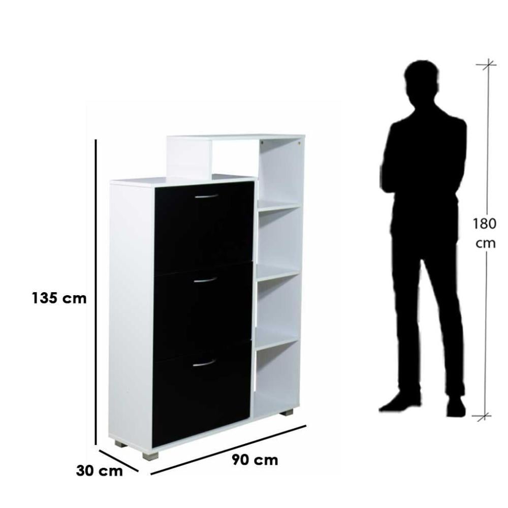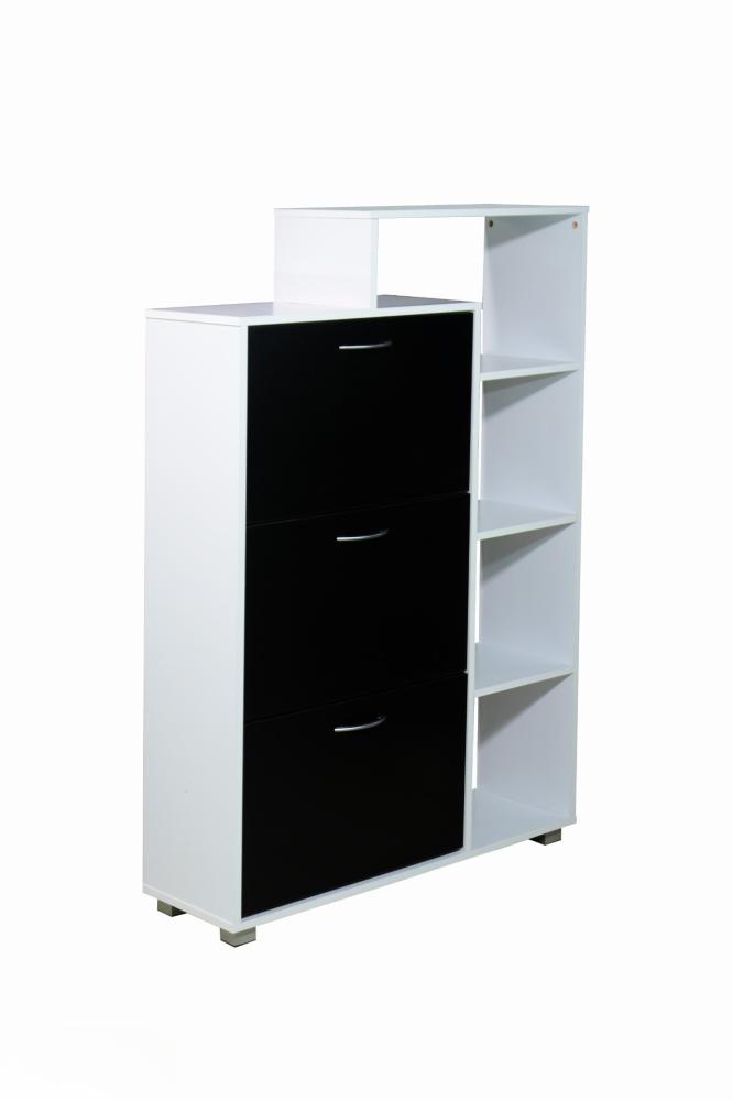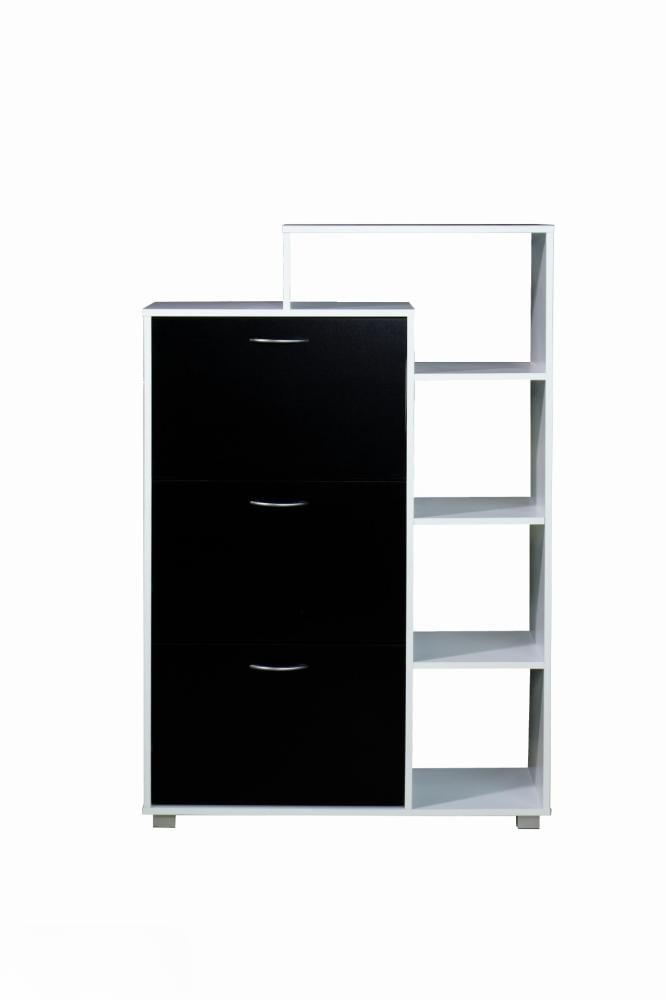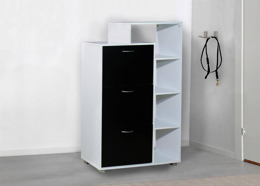 جزامة أحذية بثلاثة أبواب مع رفوف جانبية مفتوحة، تمنحك حل عمليا للتخزين وتنظيما أنيقا لمدخلك. مصنوعة من خامات عالية الجودة بتصميم مودرن يجمع بين اللونين الأبيض والأسود ليضيف لمسة عصرية تناسب مختلف أنماط الديكور