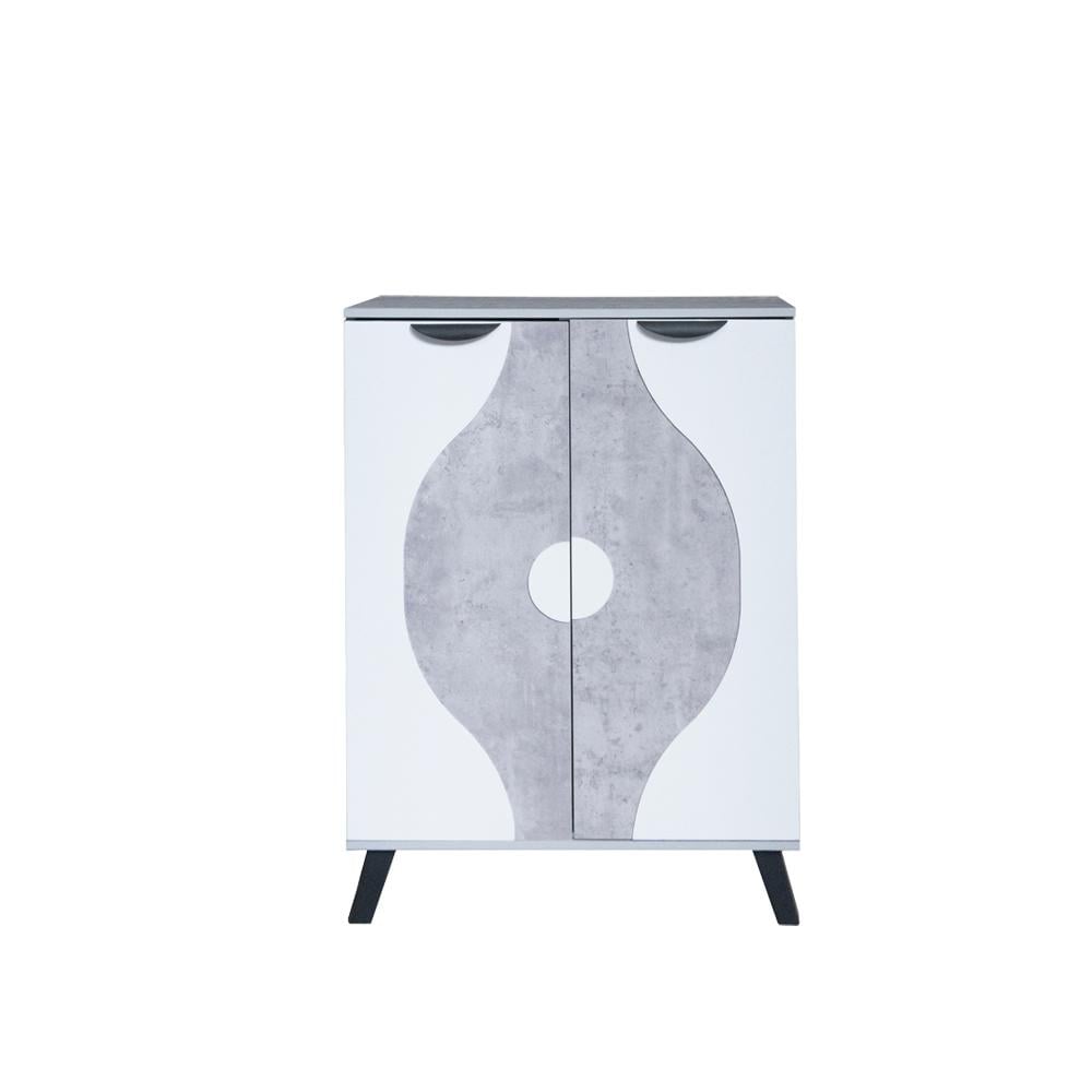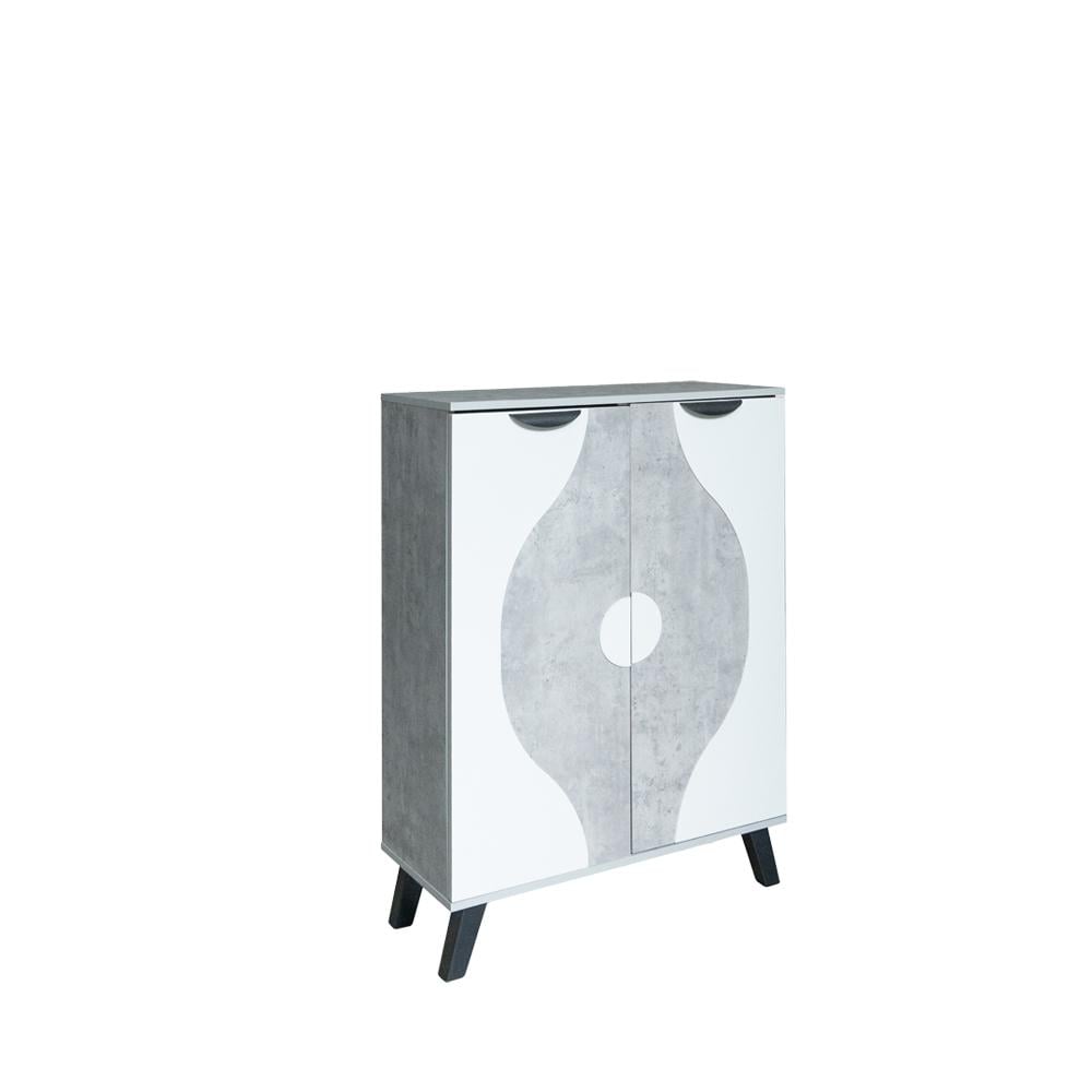 • دولاب احذية بواجهة هندسية باللون الابيض الرمادي تضيف لمسة حديث للمنزل