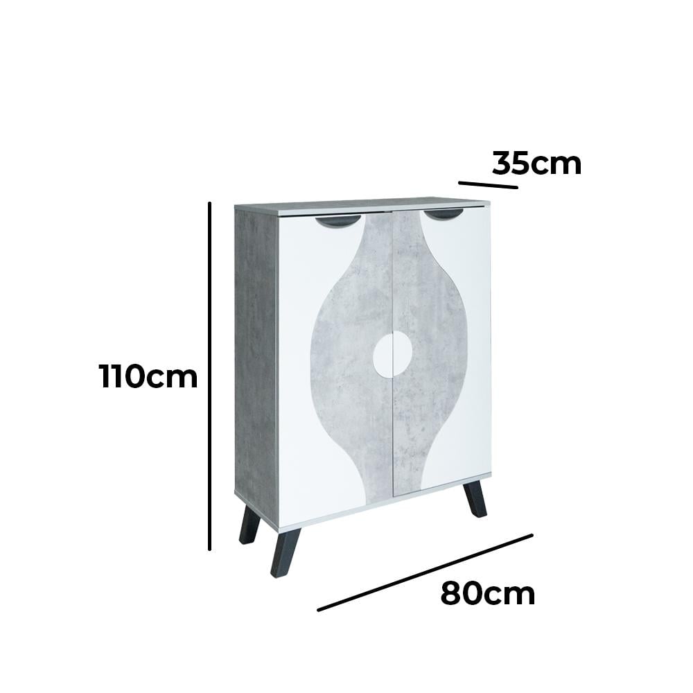 دولاب احذيه خشب بابين لون رمادي – 80×35×110 سم