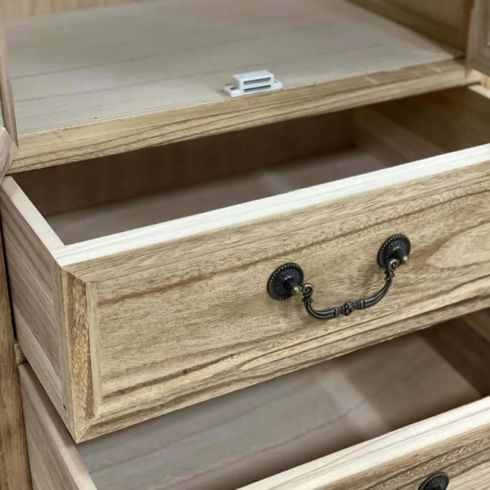 أضف لمسة من الأناقة والتنظيم إلى منزلك مع هذا الدولاب الخشبي المصنوع بعناية من أجود أنواع الخشب الطبيعي. تصميم يجمع بين الجمال العملي والفخامة الكلاسيكية، ليناسب جميع أنماط الديكور من المودرن إلى الريفي.