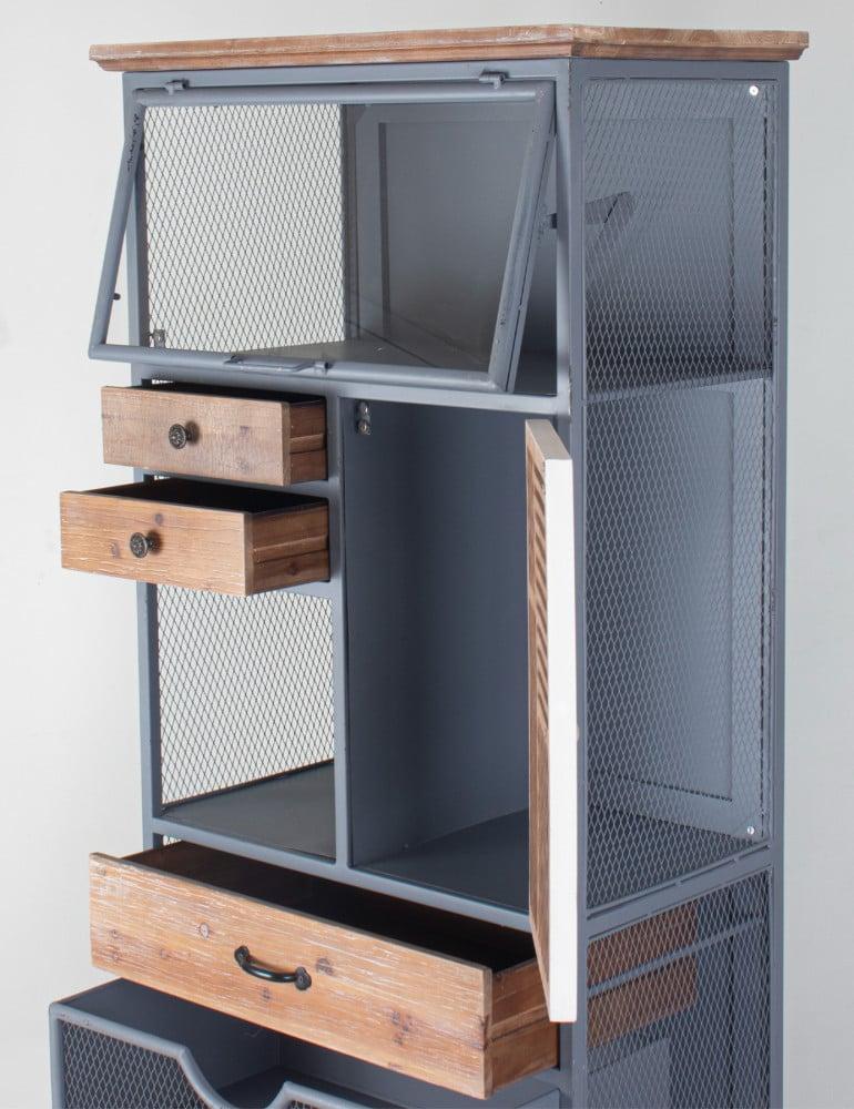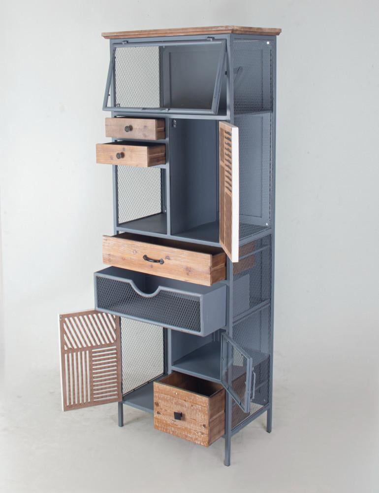 يحتوي على عدة رفوف ودروج مما يسمح بتخزين العديد من الأشياء المختلفة بطريقة منظمة.