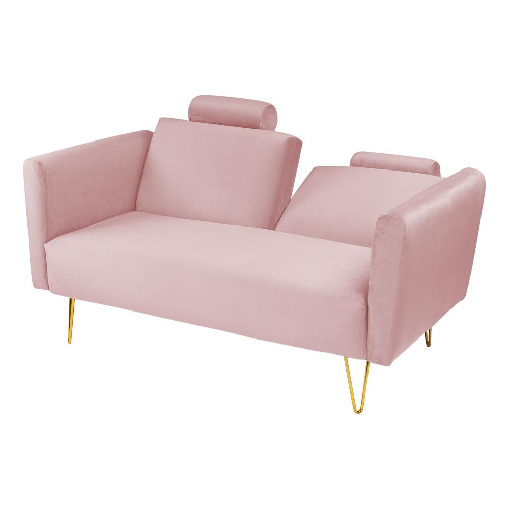 روسيلا  أريكة سرير 2x1 منجدة بالمخمل لون زهري فاتح مقاس 160x80x90 سم