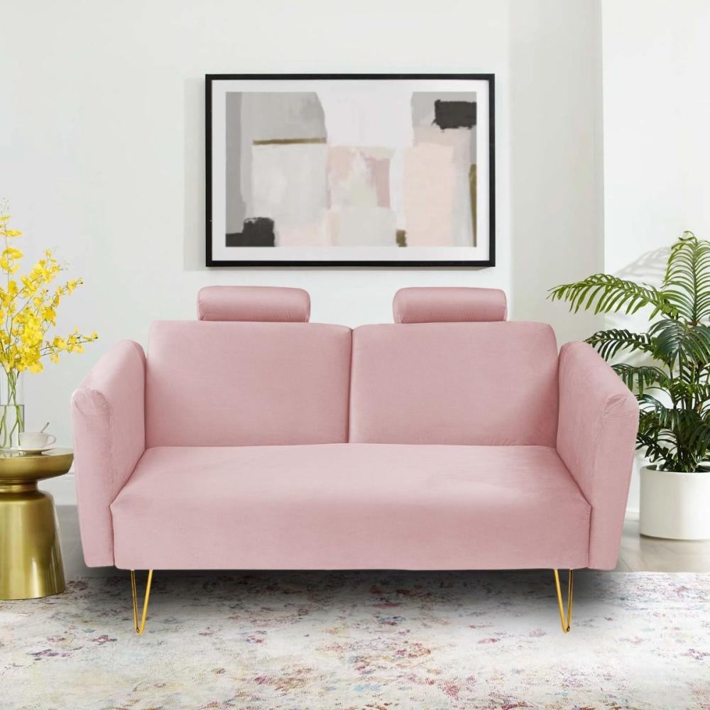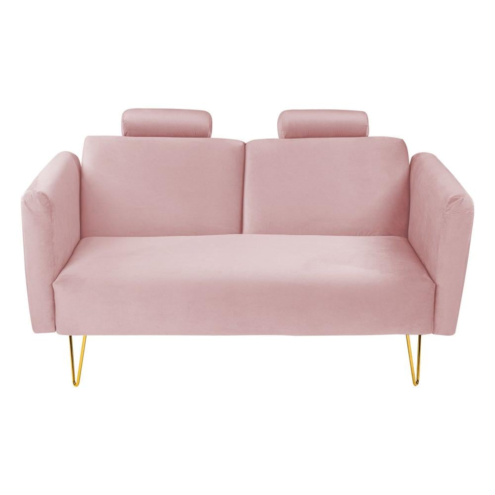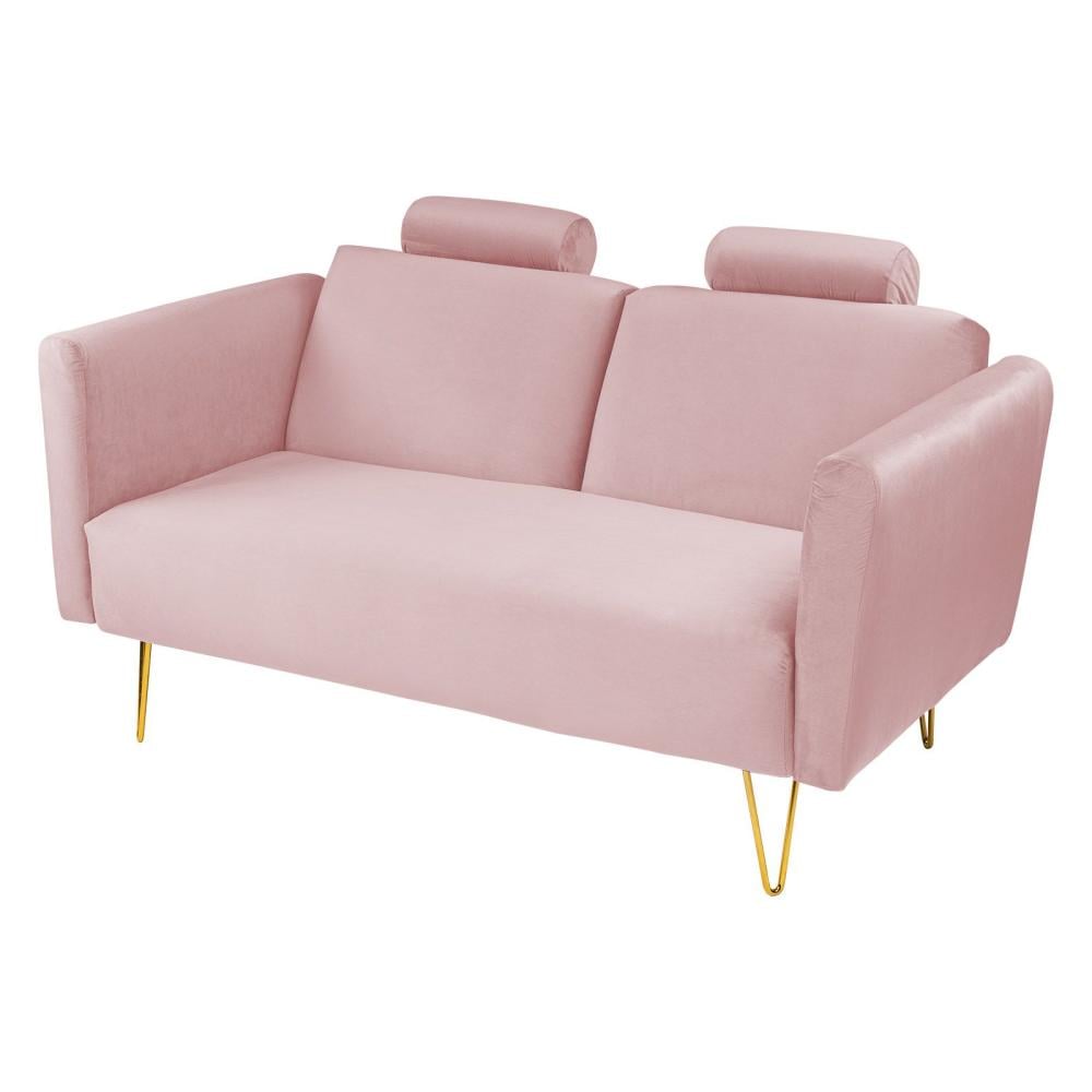 روسيلا أريكة سرير 2x1 منجدة بالمخمل لون زهري فاتح مقاس 160x80x90 سم