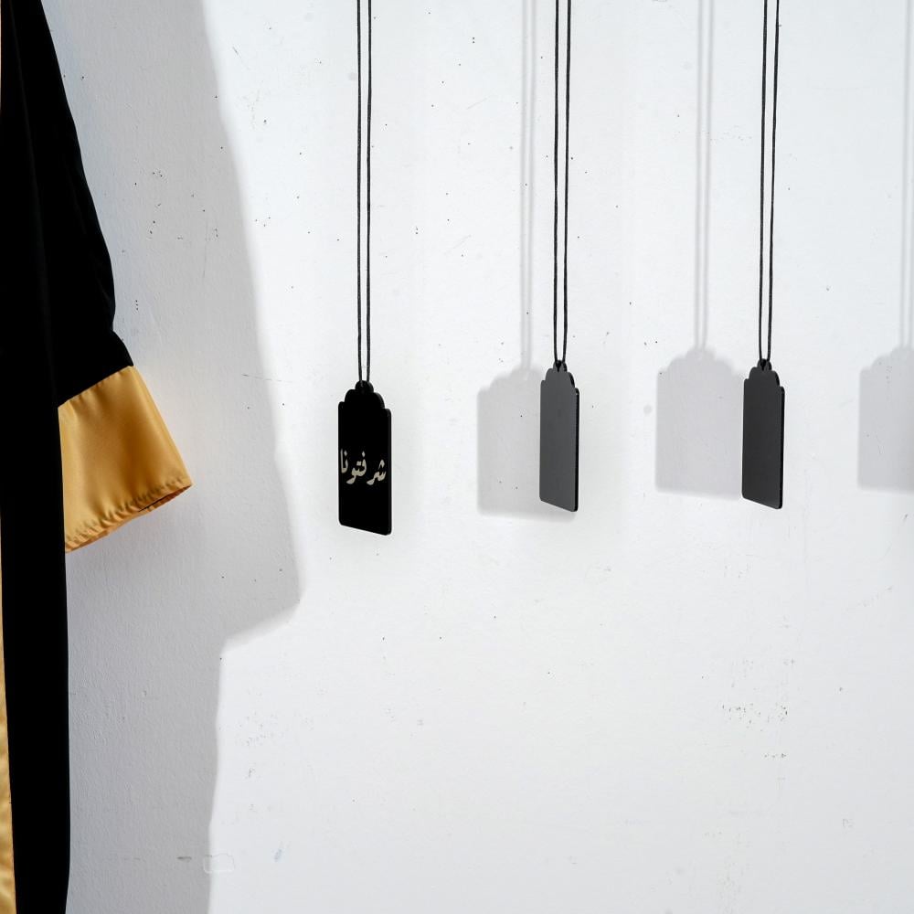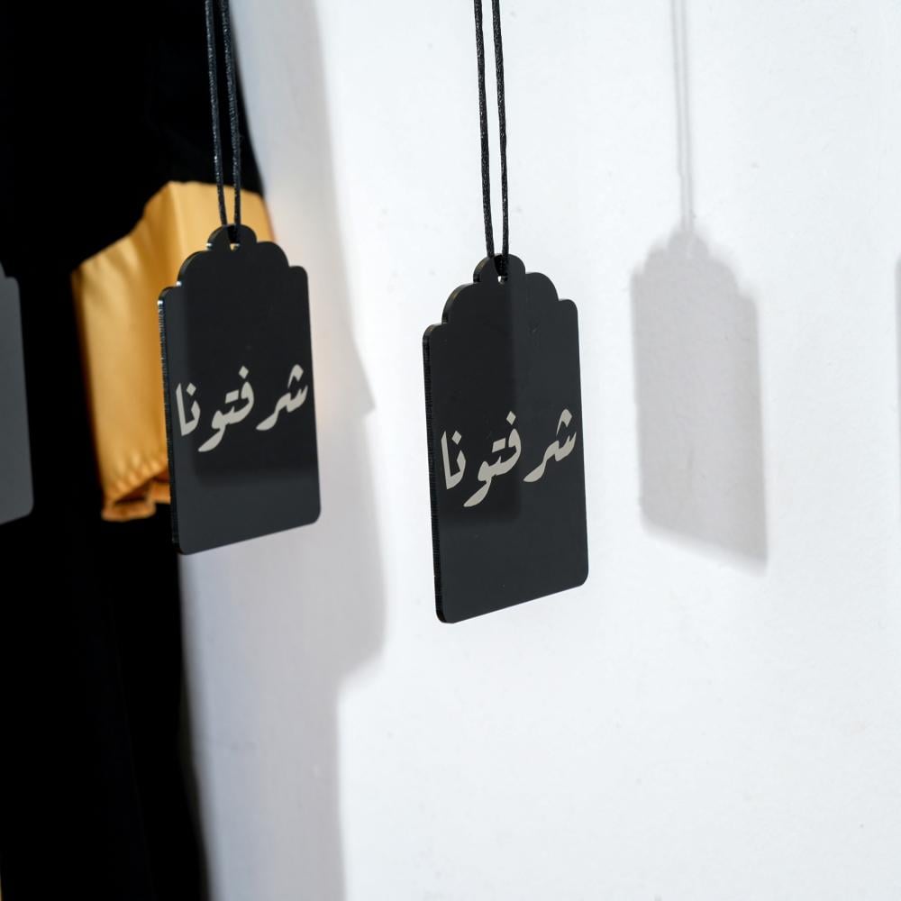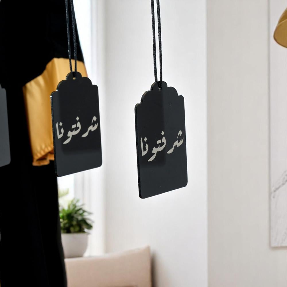 ستاند تعليق الملابس مع تعاليق بعبارة (شرفتونا) لون اسود مقاس 162x182 سم