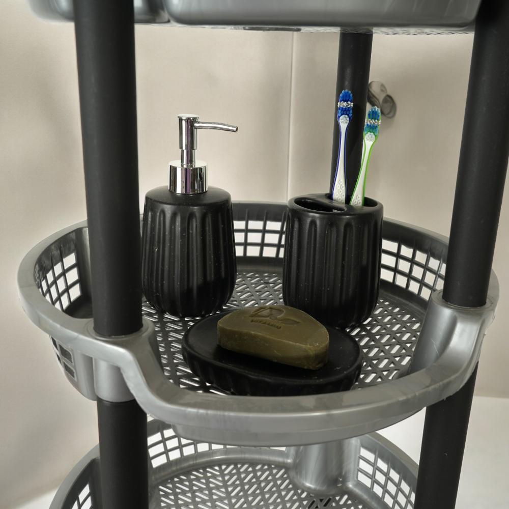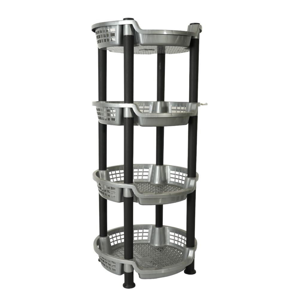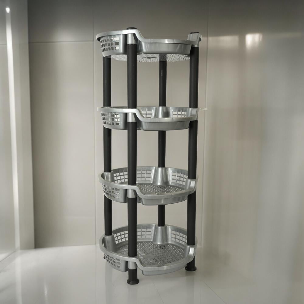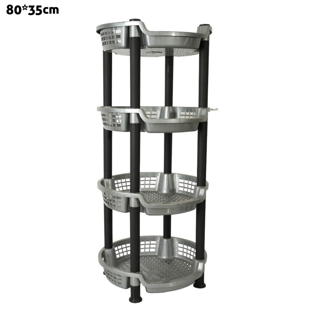 ستاند بلاستيك للتخزين دائري 4 دور باللون الرمادي والاسود مقاس 80x35 سم