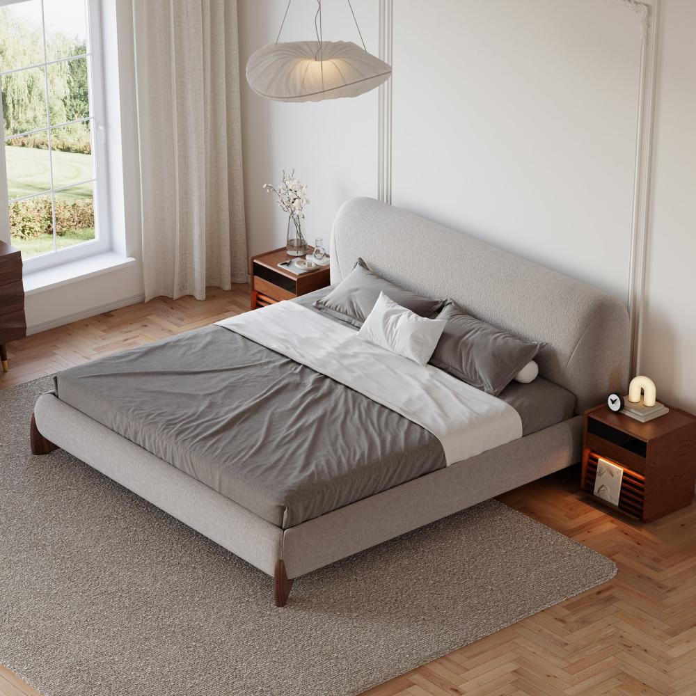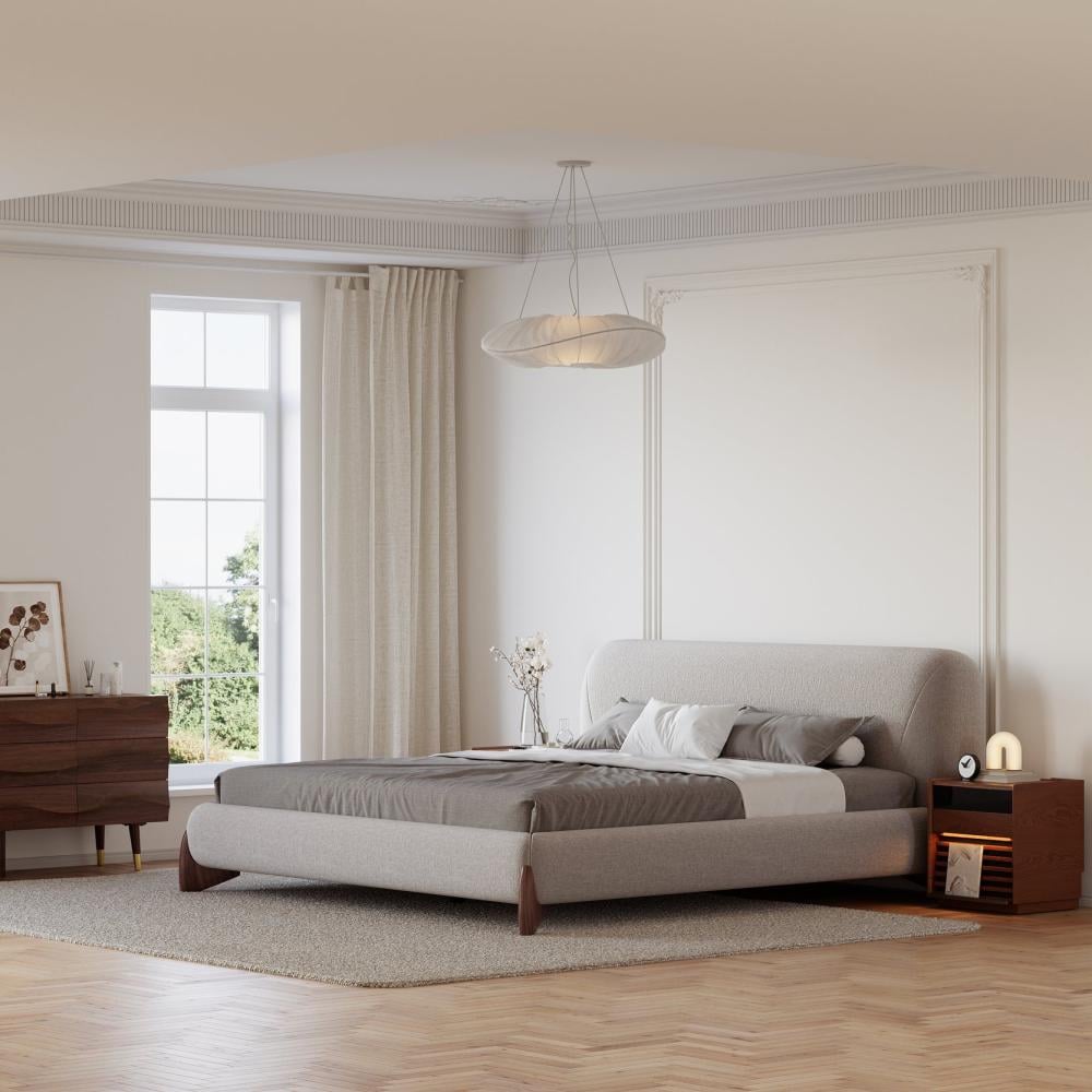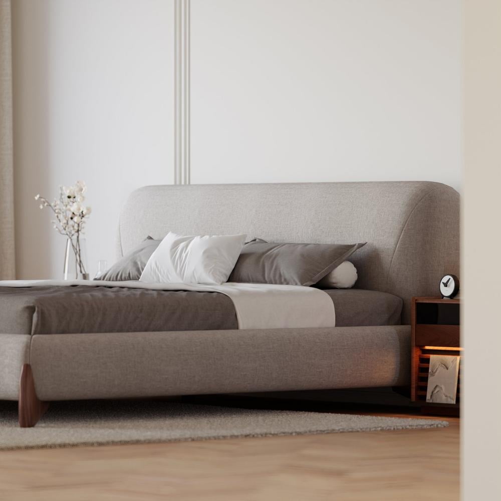 - السرير منجد بالكتان لمظهر أنيق وملمس مريح.