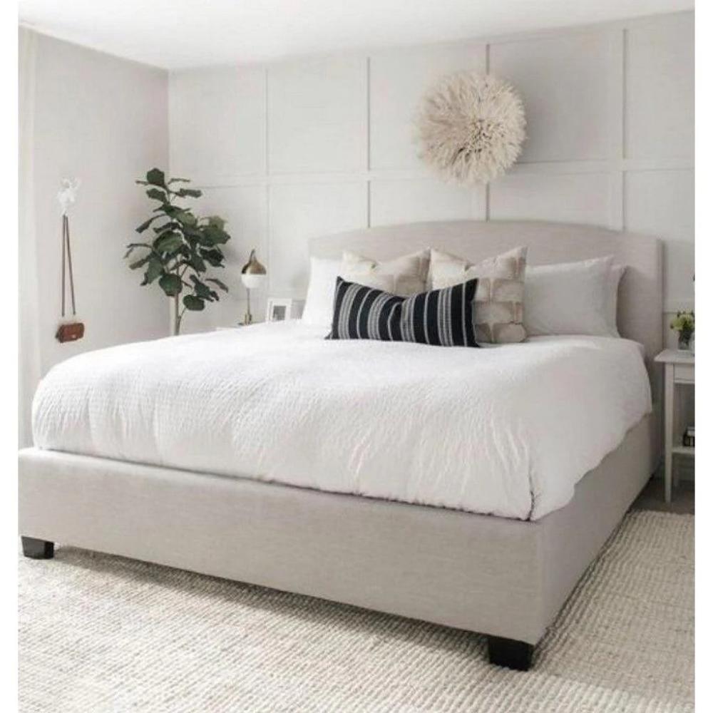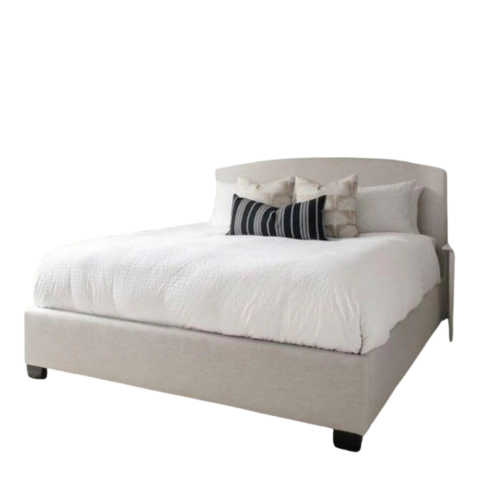 - السرير منجد بالكتان لمظهر أنيق وملمس مريح.