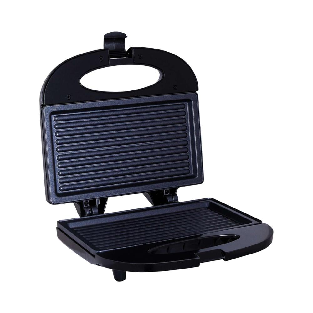 ماكينة صنع الساندويش هذه لها ذراع إمساك معزول. يظل باردًا حتى أثناء عملية الطهي.