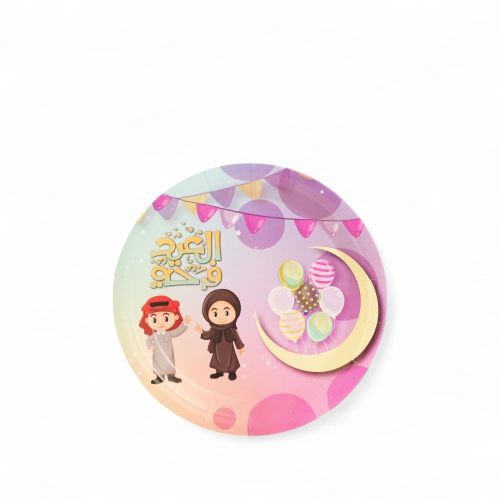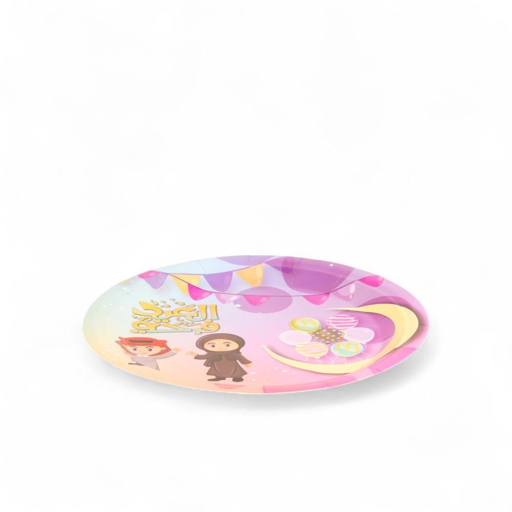 صحن تقديم الحلوي ورقي بتصميم مميز بعبارة (العيد فرحة) بالوان متعددة 10 حبة - عيد الأضحي 2025