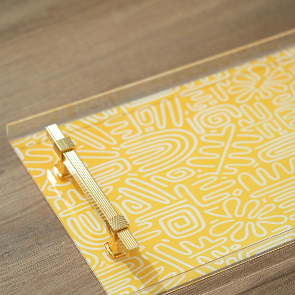 صينية تقديم اكريلك بتصميم مميز لون اصفر مقاس 20x40 سم