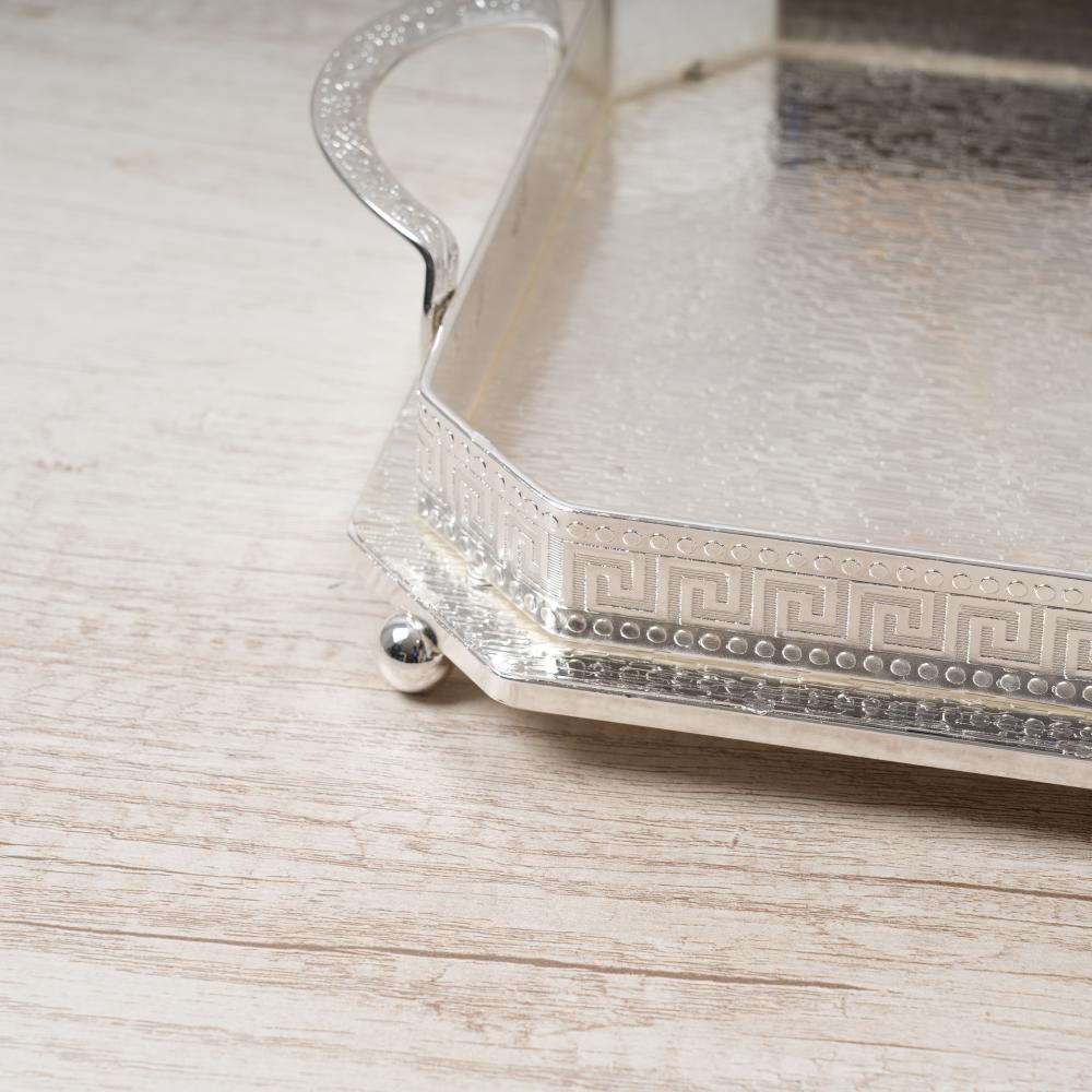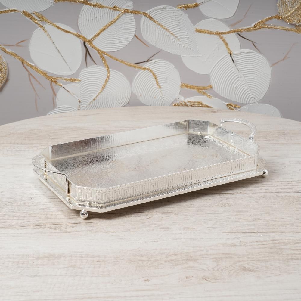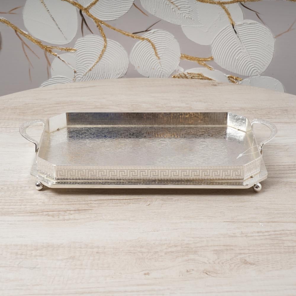 صينية تقديم الحلوي بتصميم مميز لون فضي مقاس 23x34 سم
