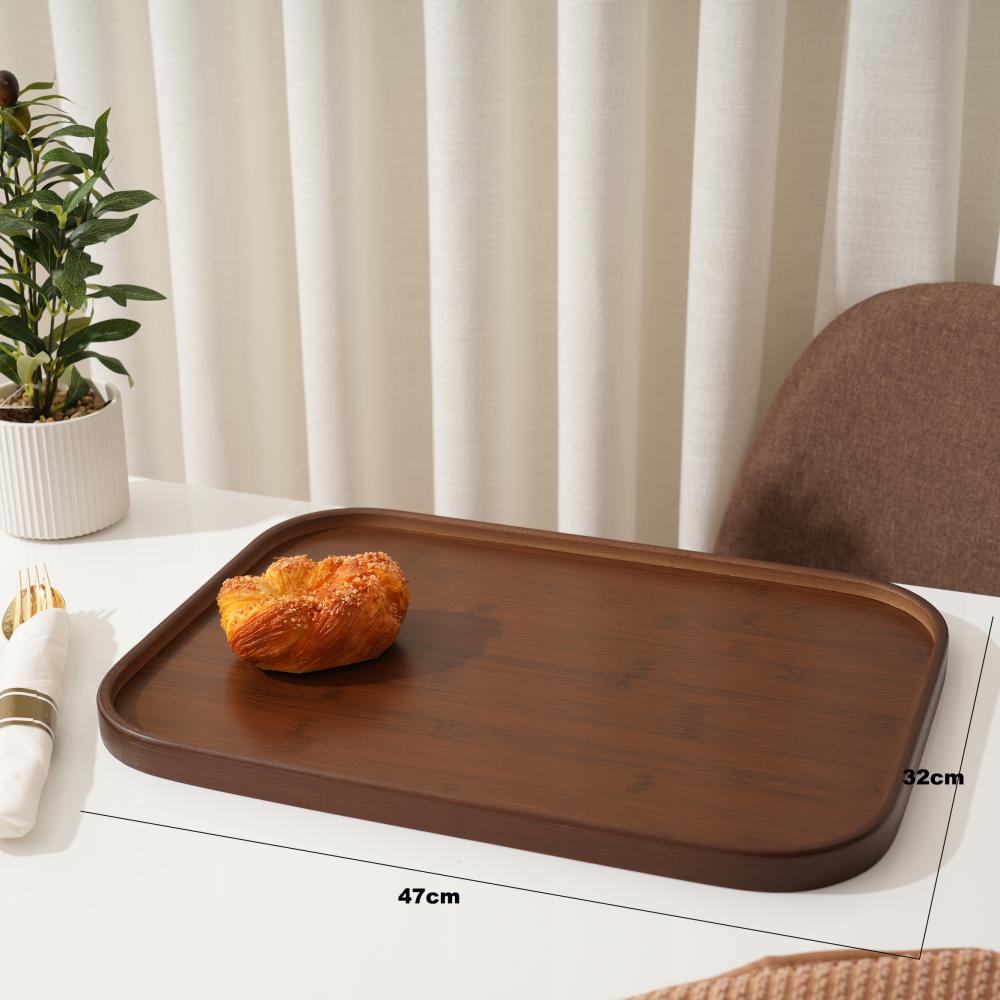 صينية تقديم أنيقة من البامبو بلون داكن مثالية للضيافة.