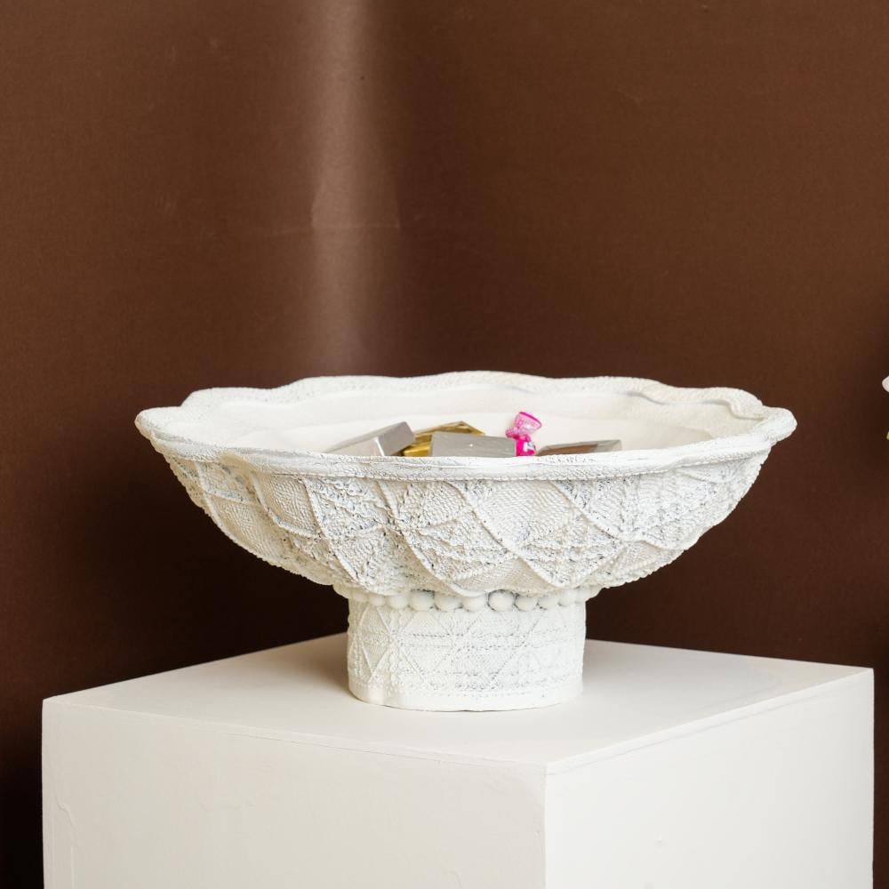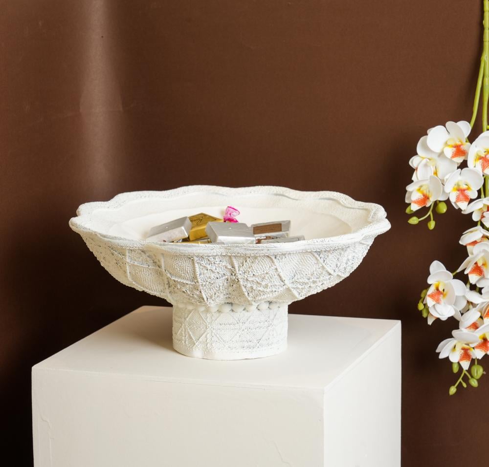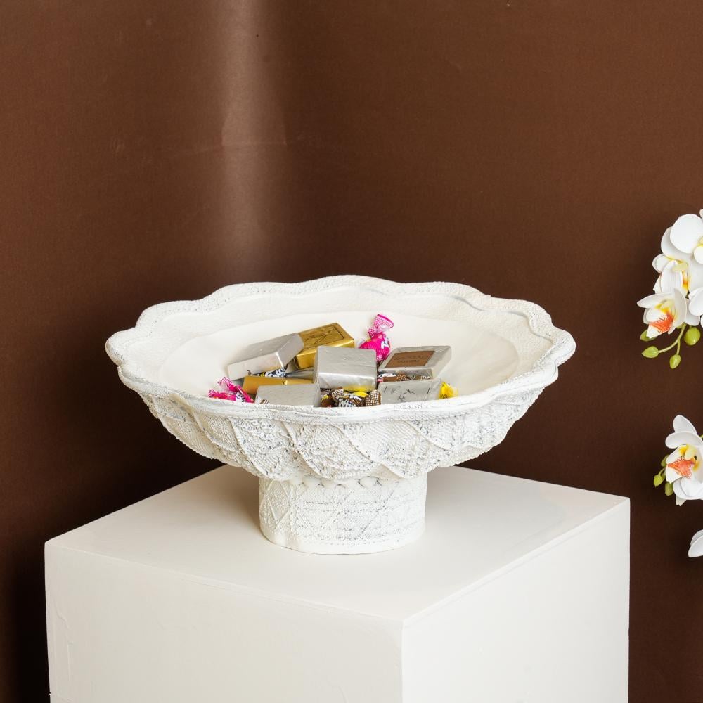 صينية تقديم ريزين بتصميم مميز لون ابيض مقاس 33x13 سم