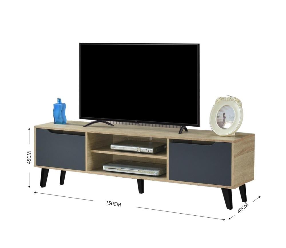 - وحدة تلفزيون خشبية مودرن بطول 150 سم تناسب معظم الشاشات حتى 65 بوصة.