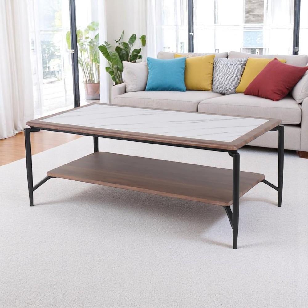 طاولة قهوة بتصميم يجمع بين دفء الخشب وأناقة المعدن، تضيف لمسة راقية وعصرية لأي زاوية في منزلك، مثالية للجلسات اليومية والضيافة الأنيقة.