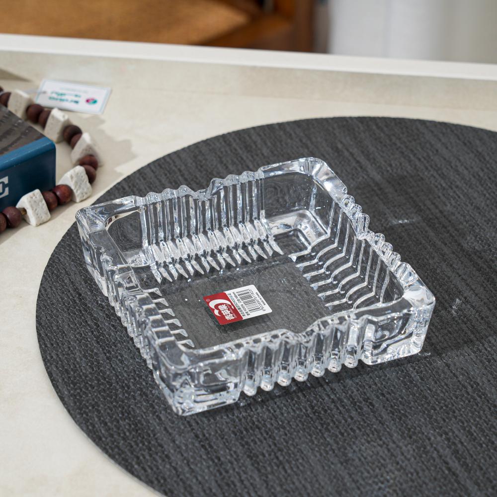 • طفاية سجائر زجاجية مربعة شفافة بتصميم عصري.