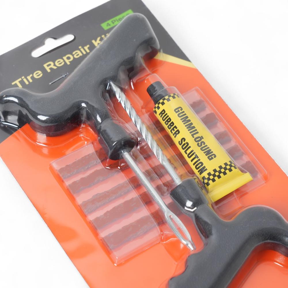 طقم متكامل لإصلاح الإطارات بدون الحاجة لفك الكفر بالكامل، مثالي للطوارئ على الطريق أو الرحلات الطويلة.