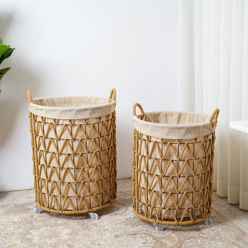 الطقم المثالي هو سلال التخزين الأسطوانية بتصميم الحبال، لأنها تجمع بين الشكل الأنيق والاستخدام العملي، وبوجود العجلات والبطانة القماشية تضمنين سهولة في النقل وتنظيم مرتب لكل أركان البيت