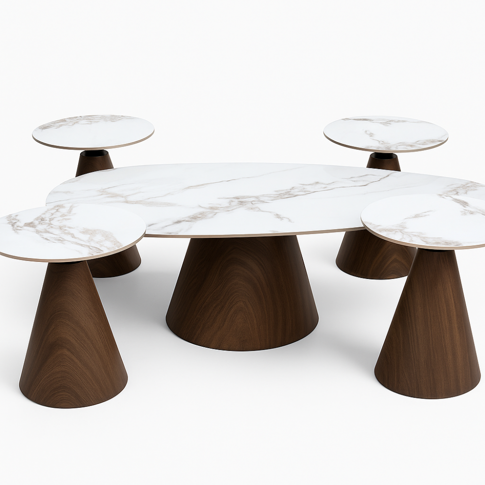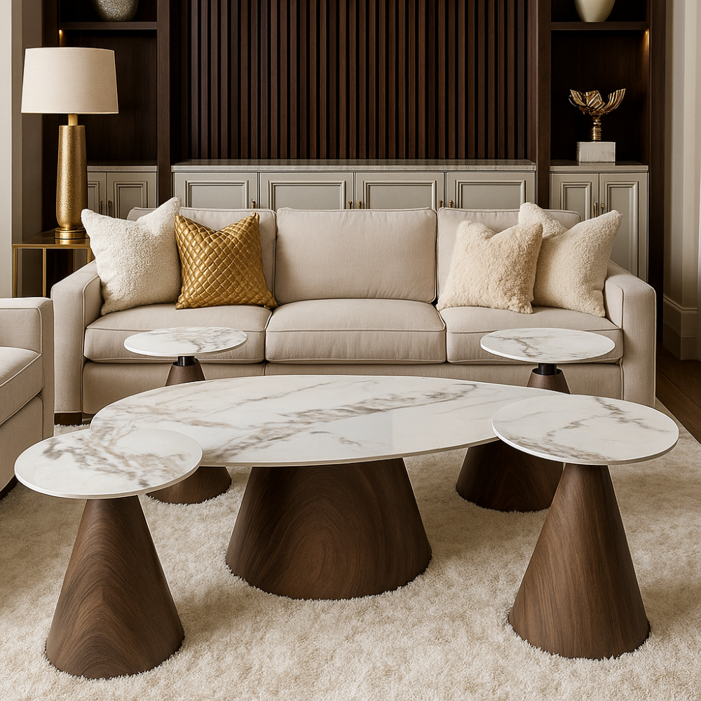 ارتقي بأجواء منزلك مع طقم الطاولات الرخامية الذي يجمع بين الفخامة والعملية