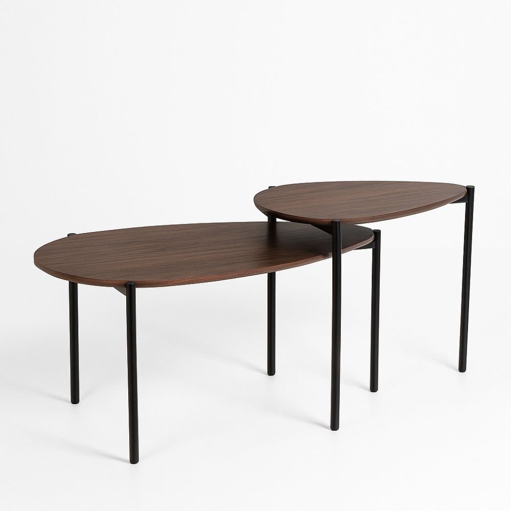 طقم طاولات خشب بقواعد معدن لون بني غامقx أسود- 2 حبة
