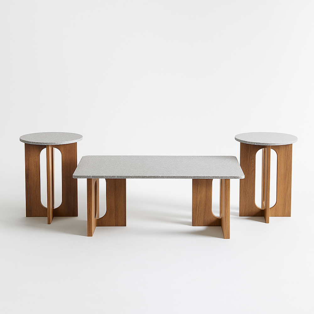 تصميم متكامل (طاولة وسط + طاولات جانبية) يخلق توازن بصري جذاب