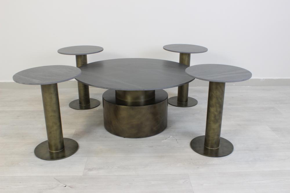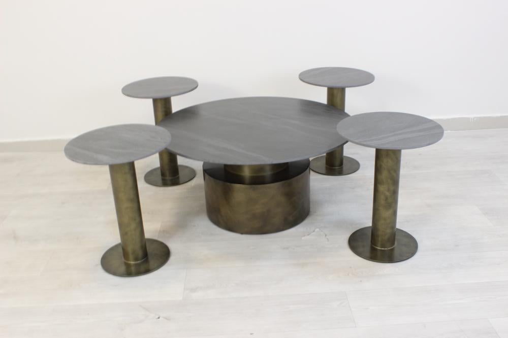- الأبعاد: الطاولة الكبيرة 90x90x39 سم – الطاولة الصغيرة 40x40x53 سم.