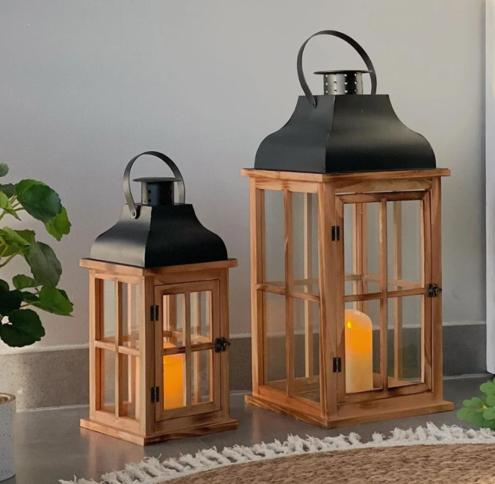 فانوس خشب وحديد قطعتين