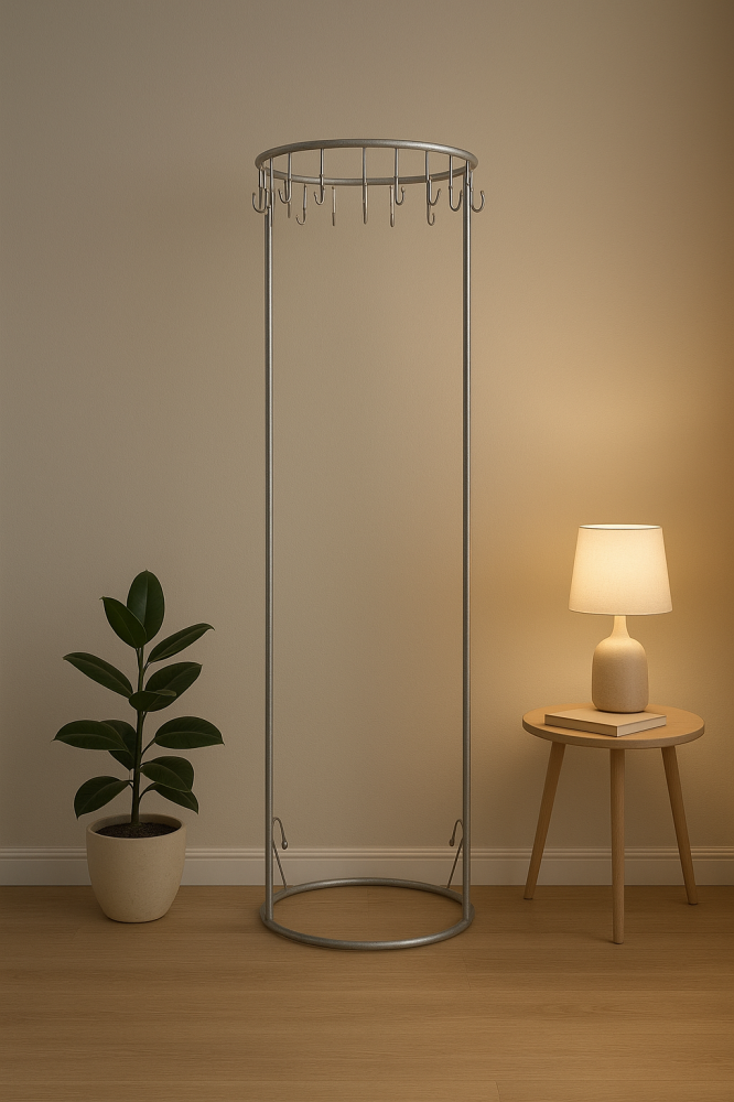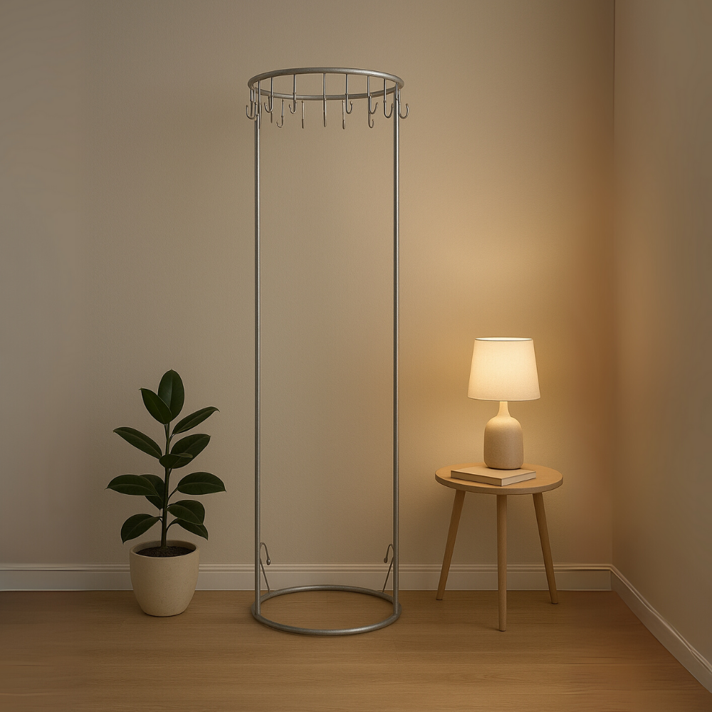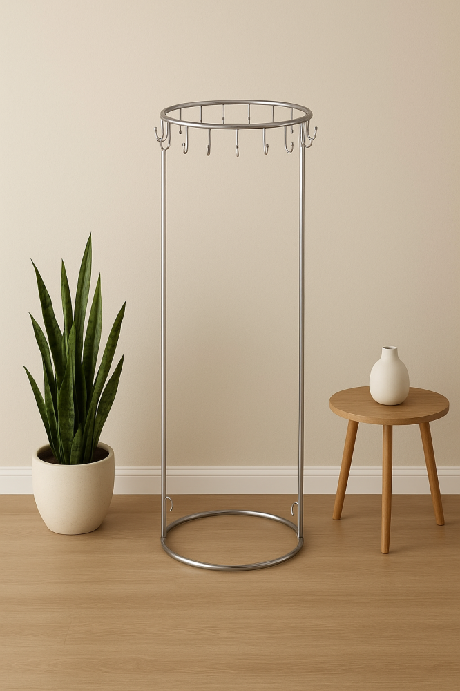 علاقة ملابس حديد بتصميم دائري لون فضي مقاس 47x47x180 سم
