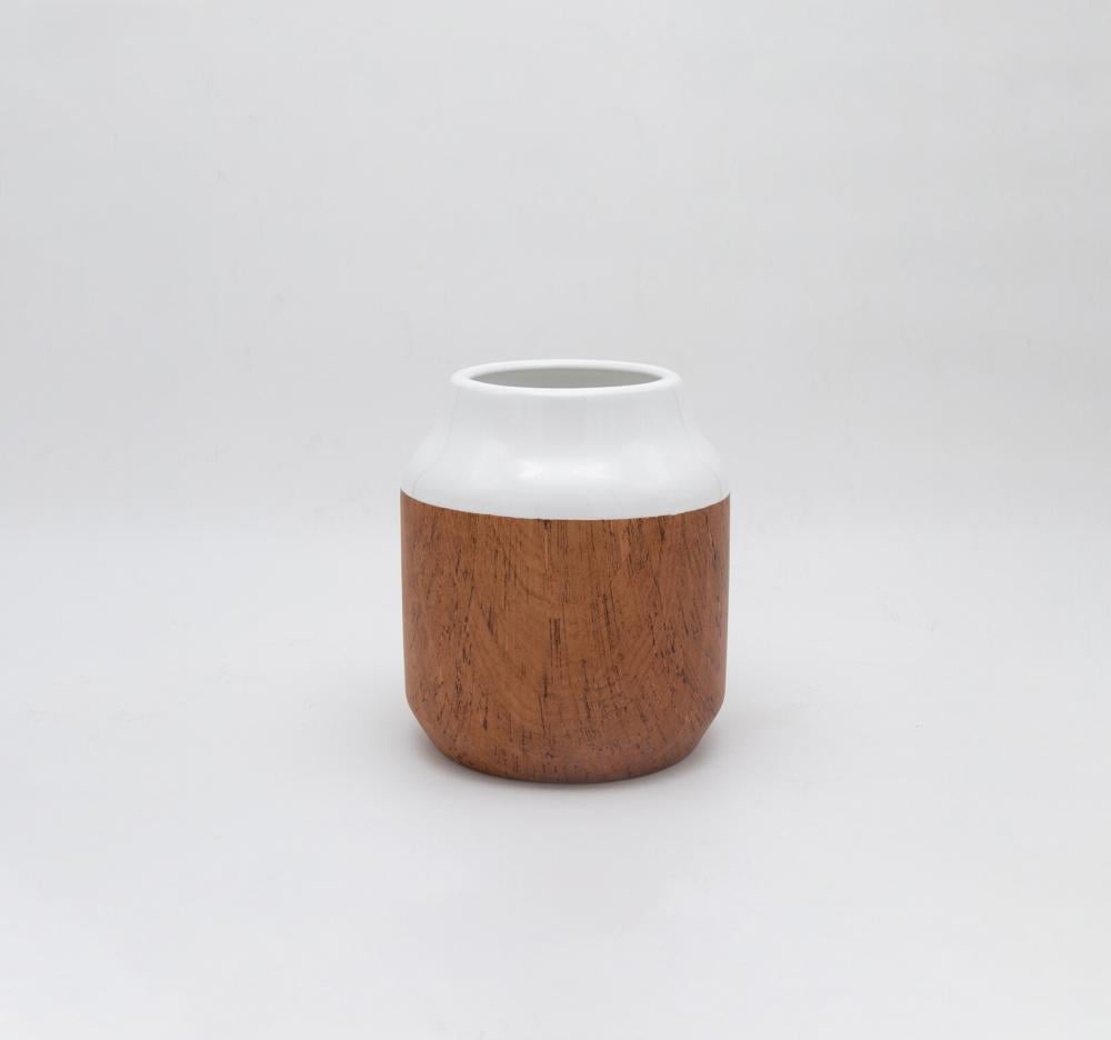 فازة سيراميك بتصميم مميز باللون الخشبى والابيض الرائع