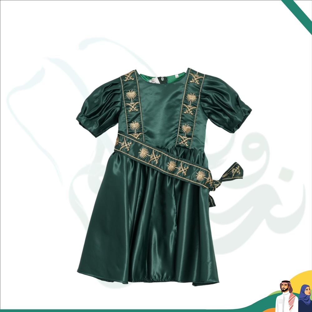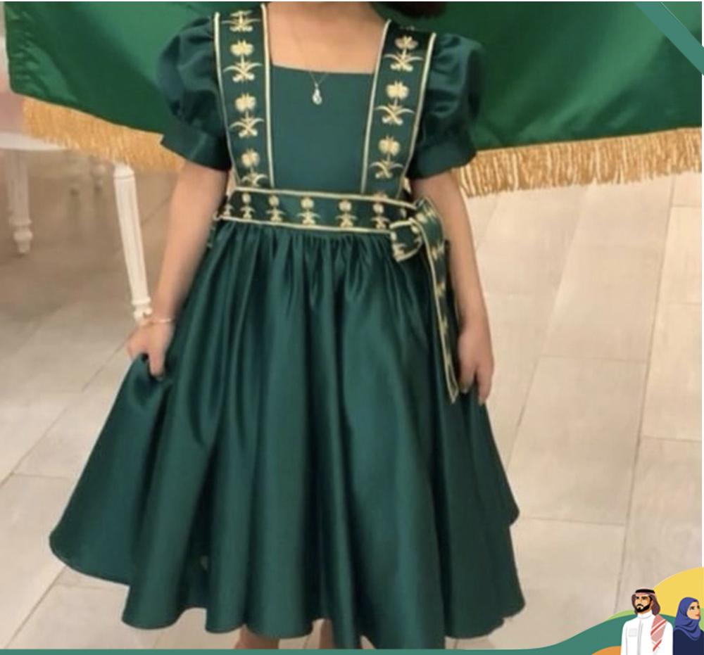 يتميز هذا الفستان بقصة تمنح طفلك حرية الحركة والمرونة. وتزيد مظهرك الرائع في اليوم الوطني.