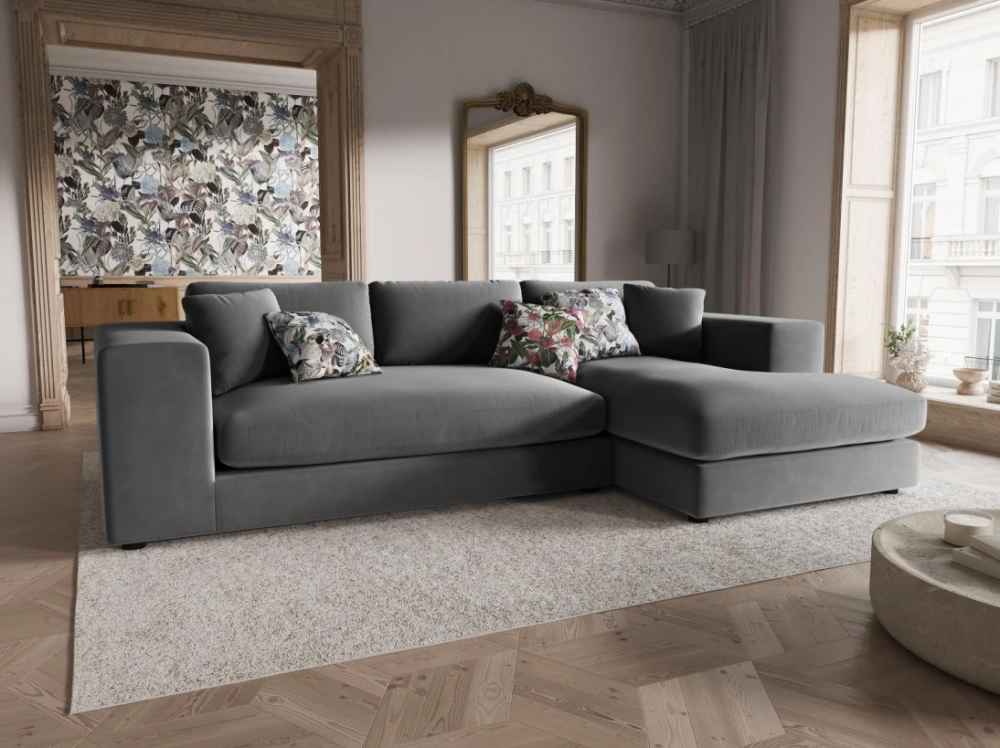 استمتع بأعلى درجات الراحة والأناقة مع هذه الكنبة العصرية ذات التصميم المميز على شكل حرف L. تأتي الكنبة بلون رمادي داكن أنيق يضفي لمسة فخامة على أي مساحة معيشة. تم تصنيعها من خامات عالية الجودة لتوفير متانة طويلة الأمد وراحة استثنائية.