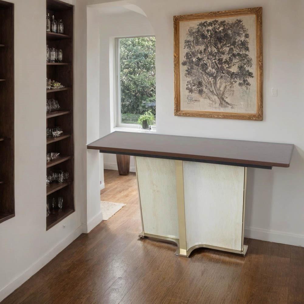 بفضل تصميمه الفريد، يتناسب هذا الكونسول بسهولة مع مختلف الأنماط الديكورية، سواء كانت كلاسيكية أو عصرية.
