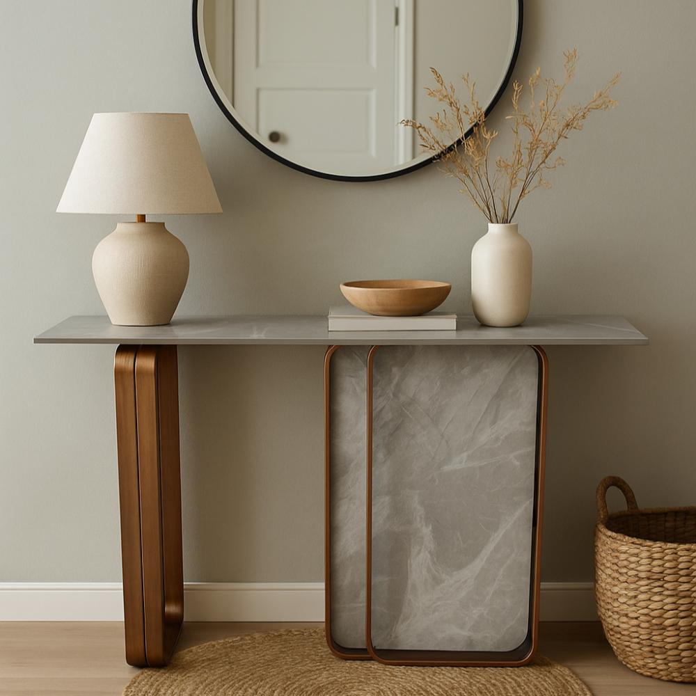 كونسول عصري وبسيط، يمكنك الاستعانة به لوضع مزهرية لتزيين المكان وإعطاءه أناقة لمنزلك،