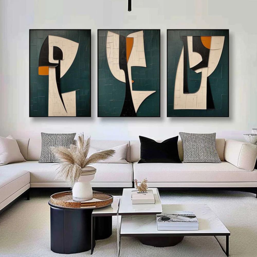أضف لمسة من الإبداع والجمال إلى مساحتك مع طقم ثلاث لوحات فنية مصنوعة من قماش الكانفس عالي الجودة