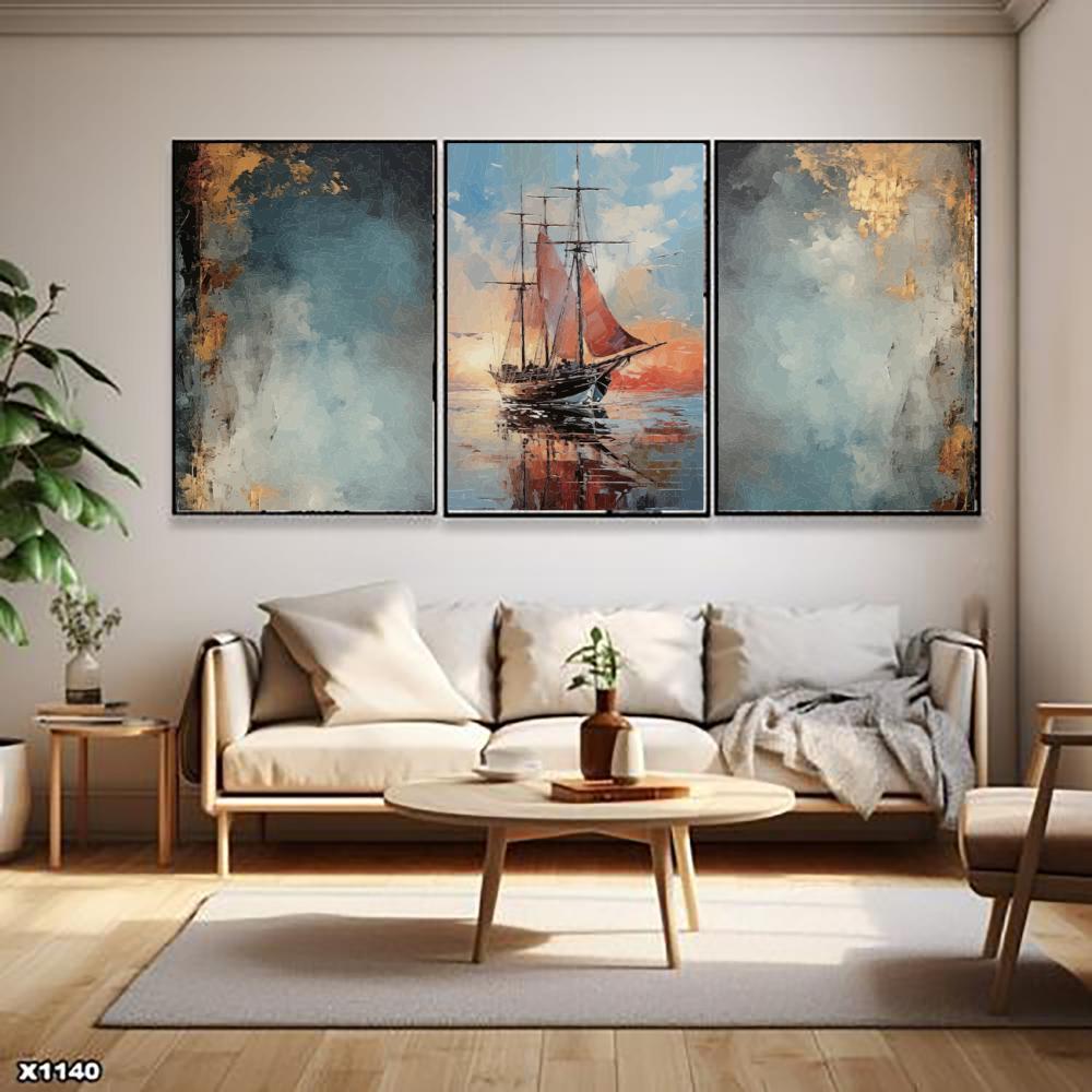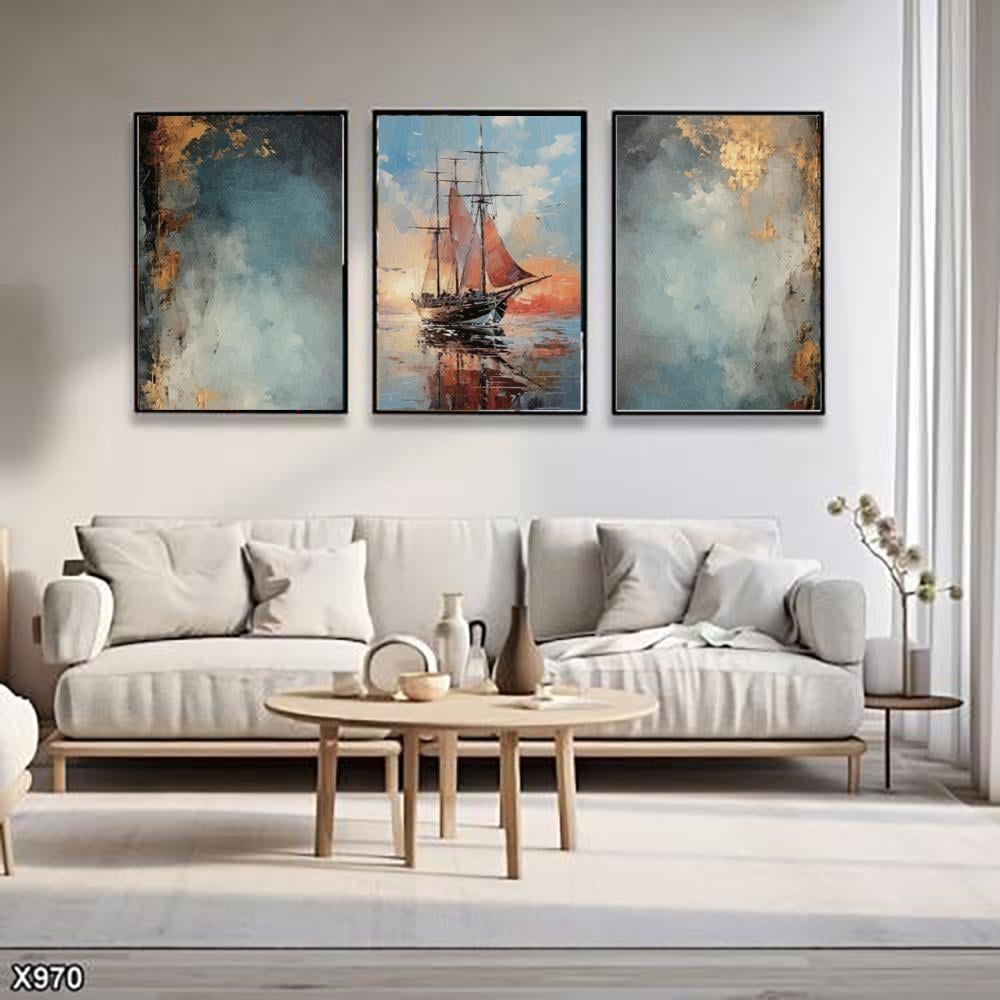 أضف لمسة من الإبداع والجمال إلى مساحتك مع طقم ثلاث لوحات فنية مصنوعة من قماش الكانفس عالي الجودة