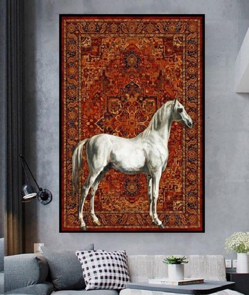 لوحة سجاد قماشية بتصميم خيل متعددة الألوان مقاس 60x90 سم
