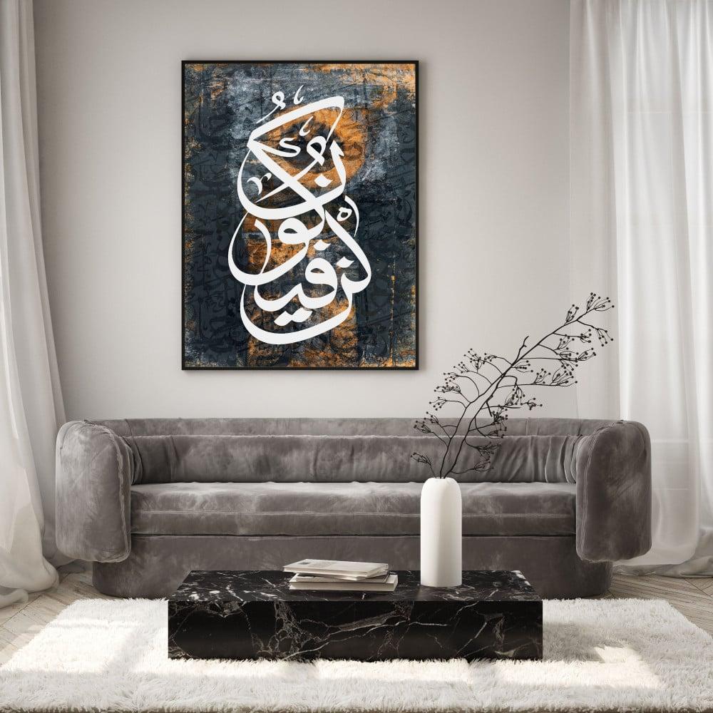 تبي قطعة فنية تعكس جمال الفن الإسلامي بخطوطها العربية المتناغمة وزخارفها الهندسية المتقنة