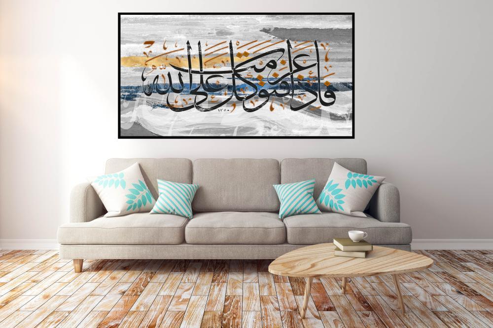 تبي قطعة فنية تعكس جمال الفن الإسلامي بخطوطها العربية المتناغمة وزخارفها الهندسية المتقنة