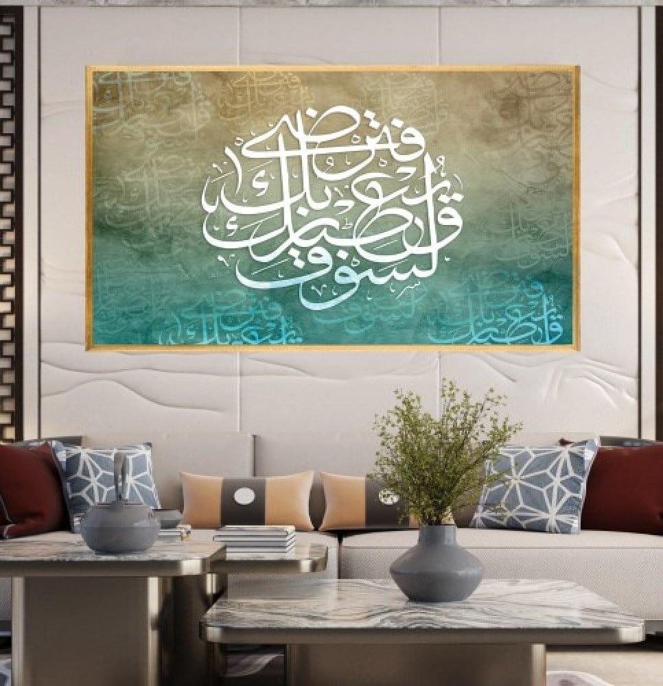 تبي قطعة فنية تعكس جمال الفن الإسلامي بخطوطها العربية المتناغمة وزخارفها الهندسية المتقنة